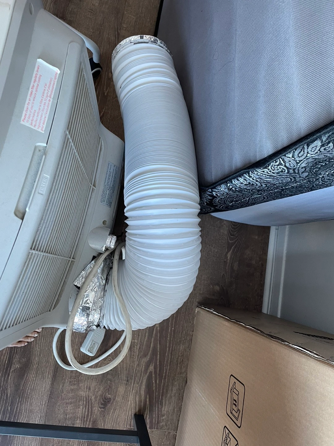 Danby AC with 84” (7’) long hose (good enough to get to your vent even if it is near the ceiling)