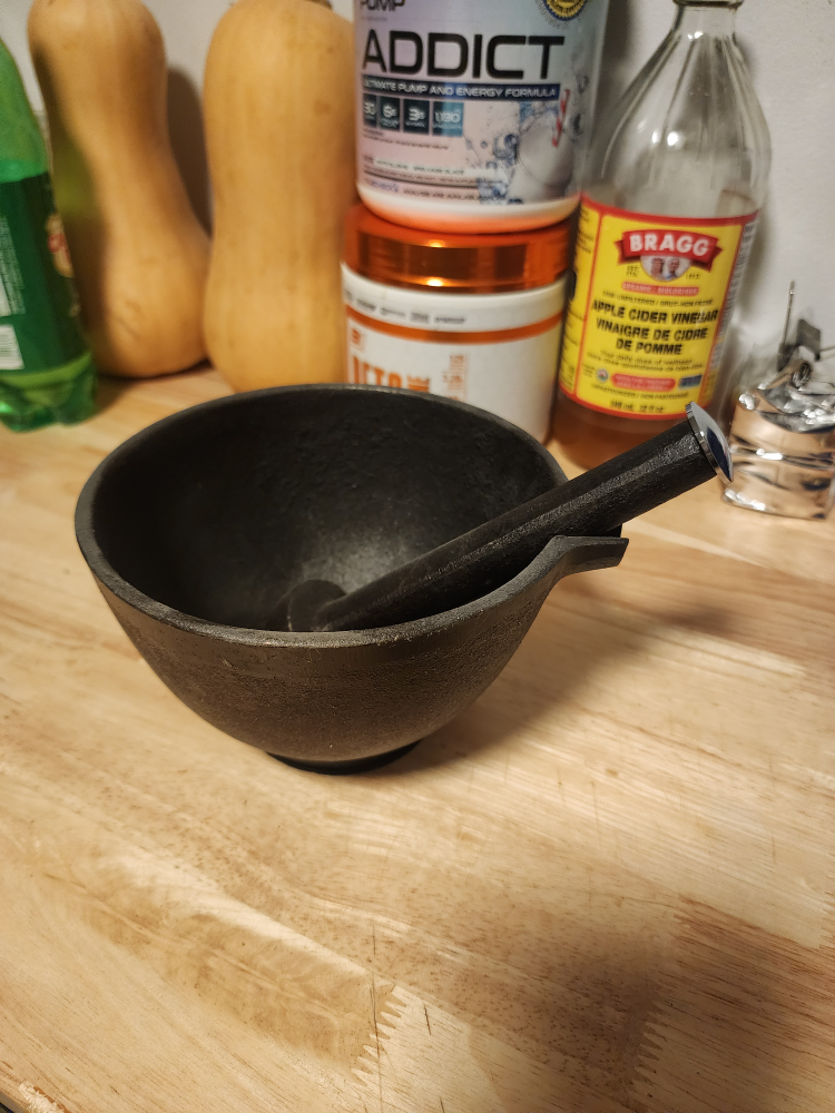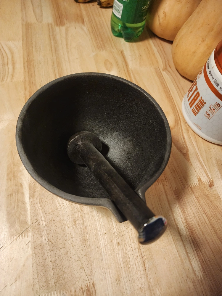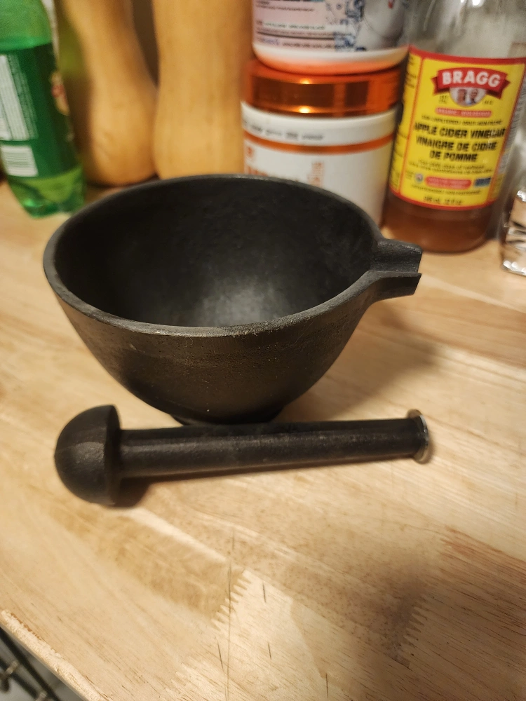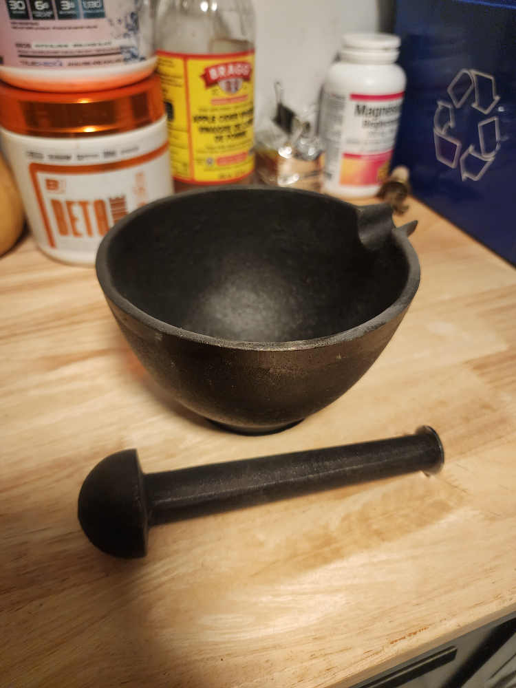 Large heavy metal pestle and mortar