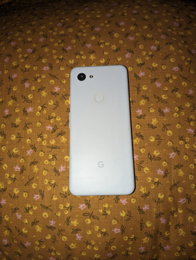 Used Google Pixel 3a. 64GB. Finger sensor on the back works. Some small scratches on the screen but no cracks or dents. The phone is in good condition still, I just upgraded to a new pixel recently and don't need this one. Comes with pink wallet case.