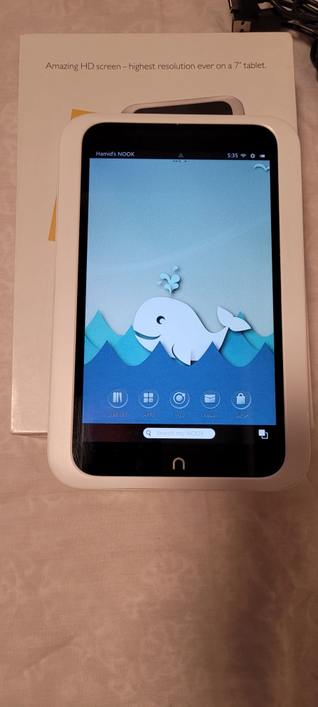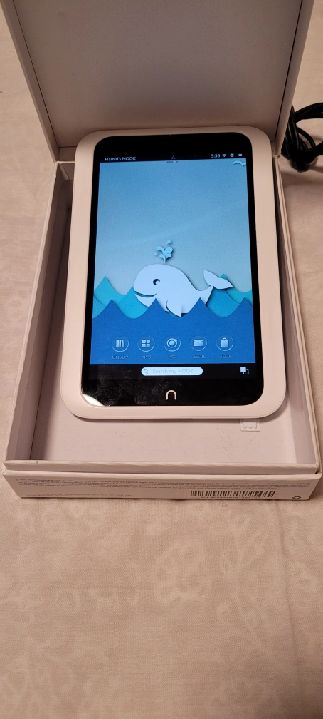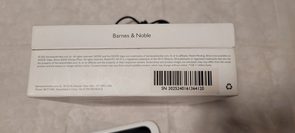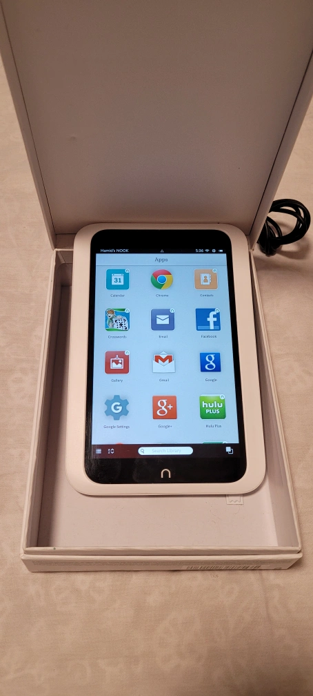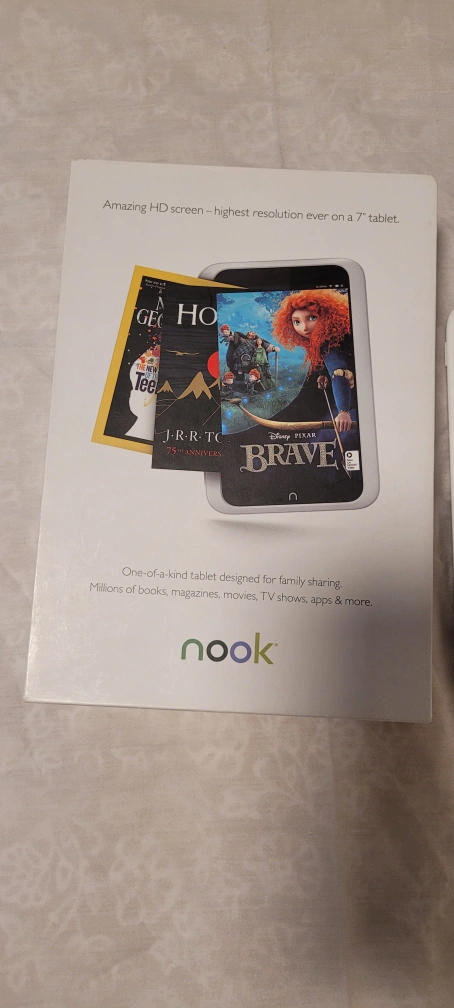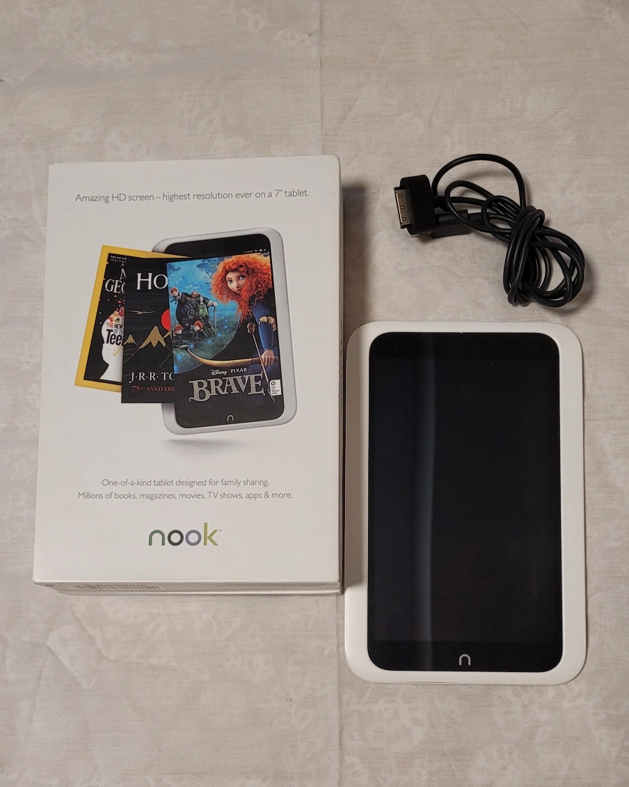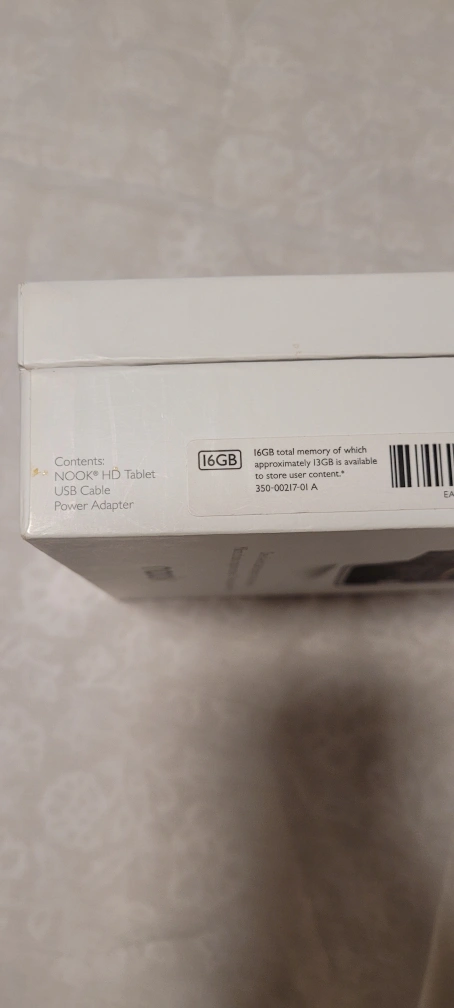 7" Nook Table 16GB memory USB cable, and power adapter included, still have the box it came in. It was a used pass on from a sibling and never used it myself, but it works fine.