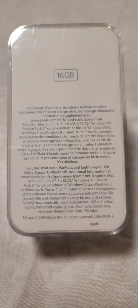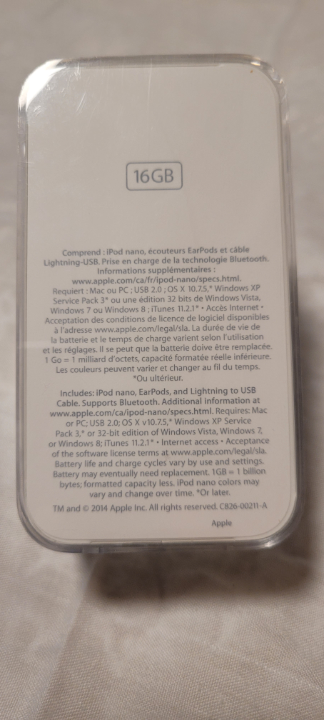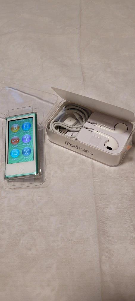 ipod nano 16GB, don't remember how long I have it now, used it for a month or probably less than that, still have the original packaging USB cable and ear buds.