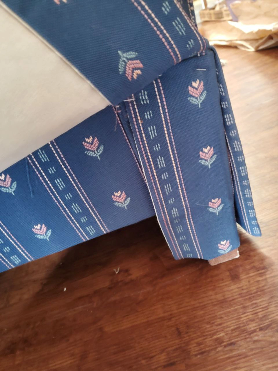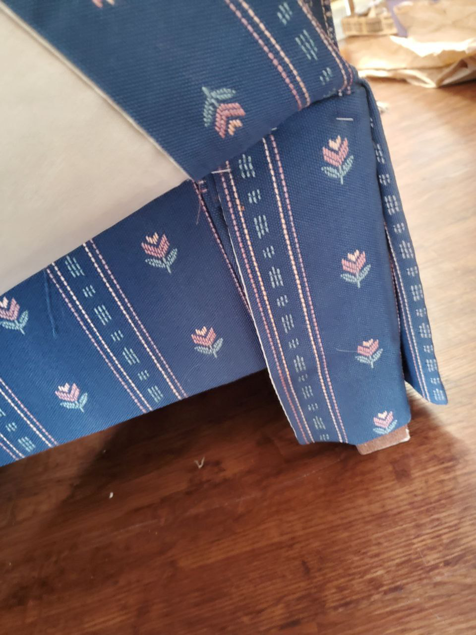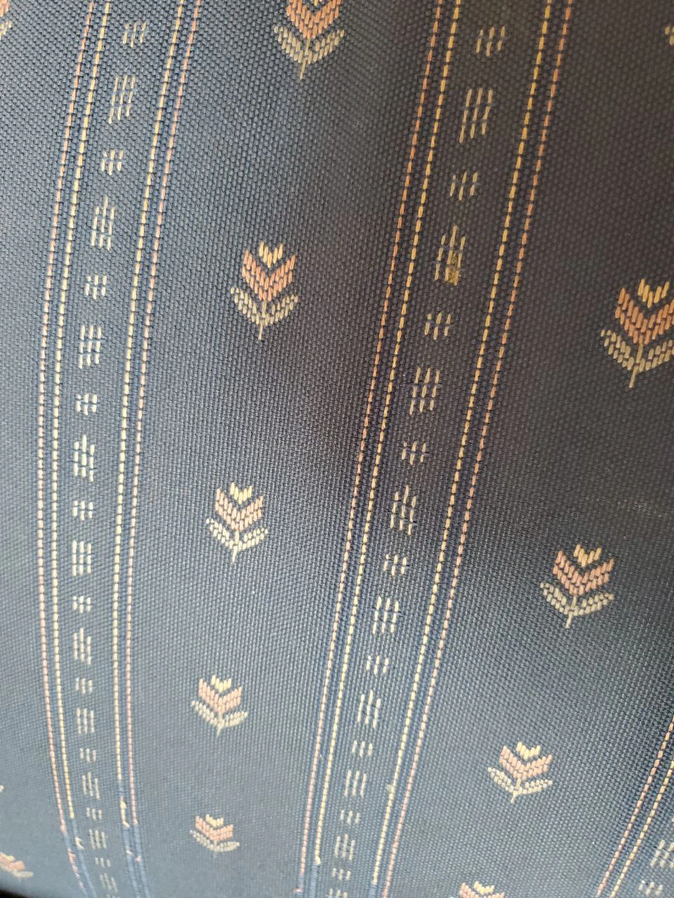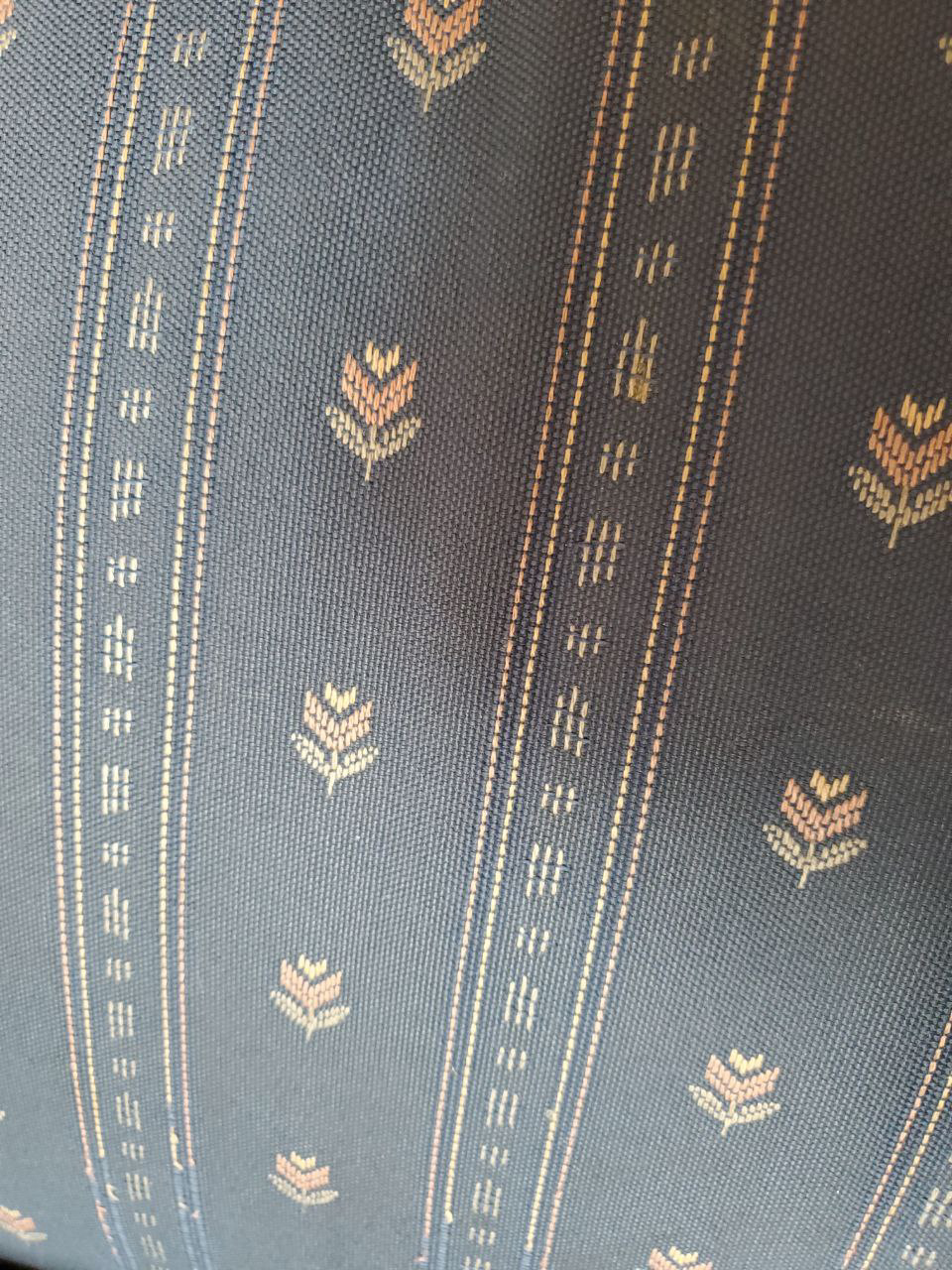best couch ever! blue, sturdy, comfy and practical. it has the design of amaranth flowers on it. I love this couch, but am moving so I need to downsize.