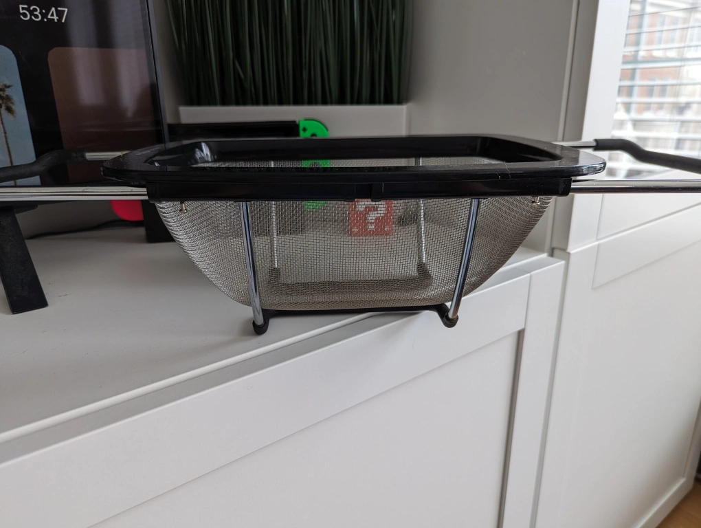 Lightly used Kitchenaid expandable strainer. Useful for draining cooked foods and washed fruits or vegetable over the sink.