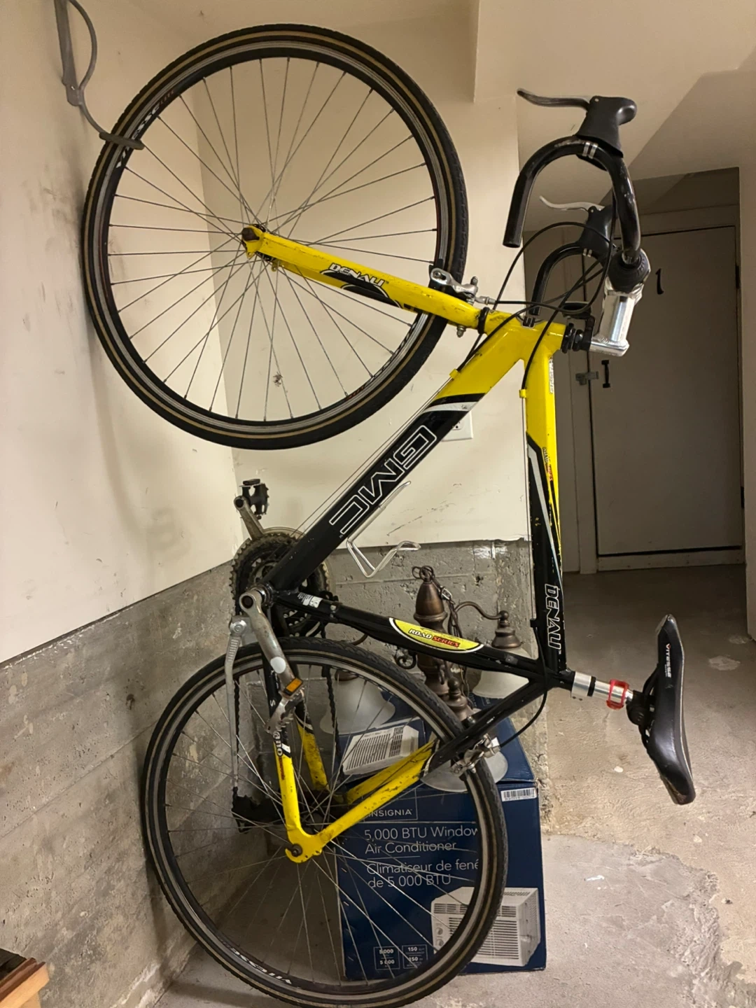 Yellow and black GMC Denali road series bicycle. This bike is ready for your next ride. It features a durable frame and reliable components.