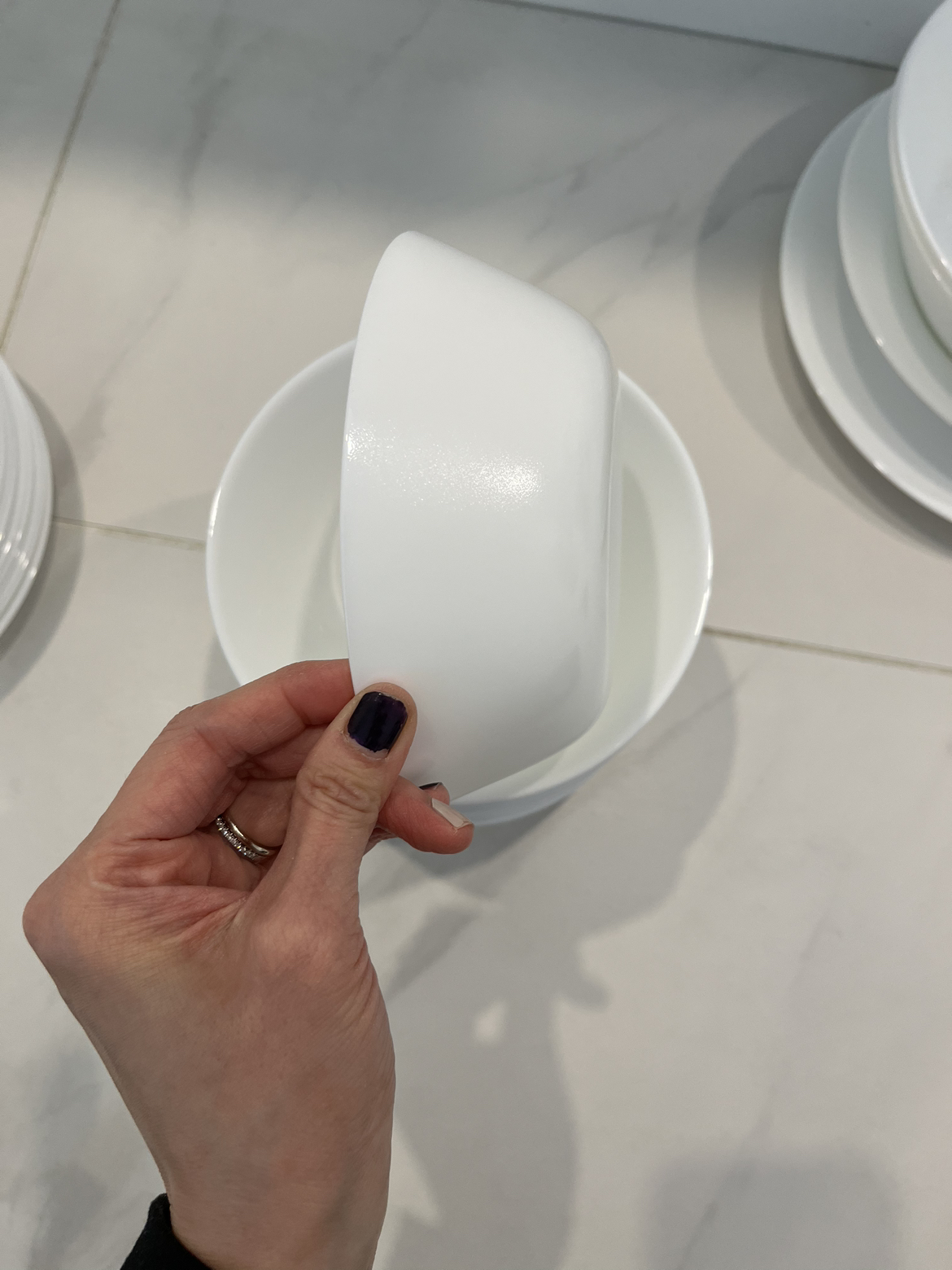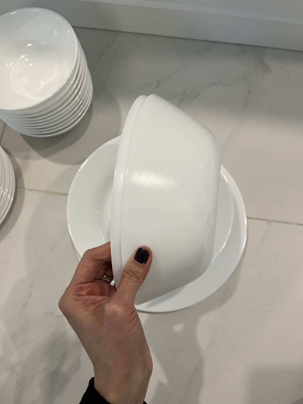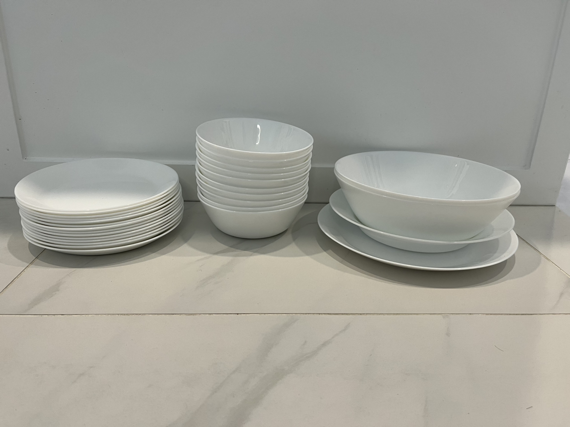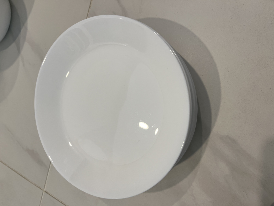Smoke free pet free home Pick up only. Yonge & steeles Item brought to driveway Selling as lot including: 10 bowls 14 plates 2 large bowls 1 shallow bowl 1 large plate Used but in good condition Seems to be no brand but similar to IKea or Corelle. Simple white design goes with everything. Stackable Great for starter set or college students dorms airbnbs