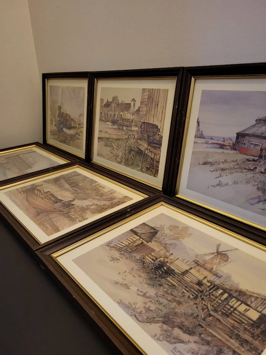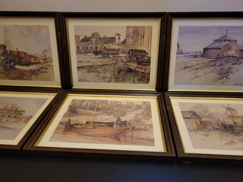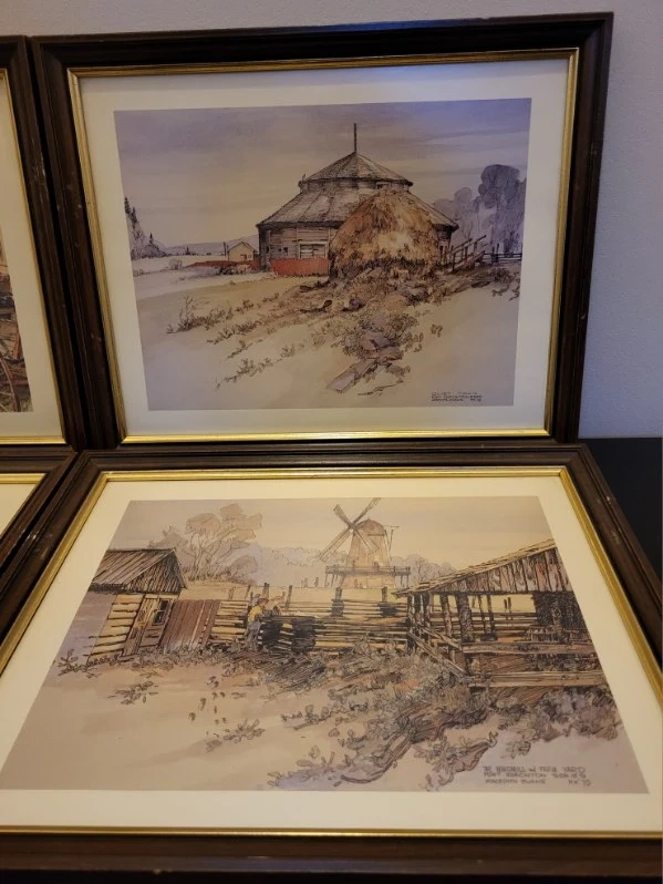 Vintage from 1970's. 6 Fort Edmonton Fine Art Prints by Meredith Evans 14" x 11" 1979 York Boats