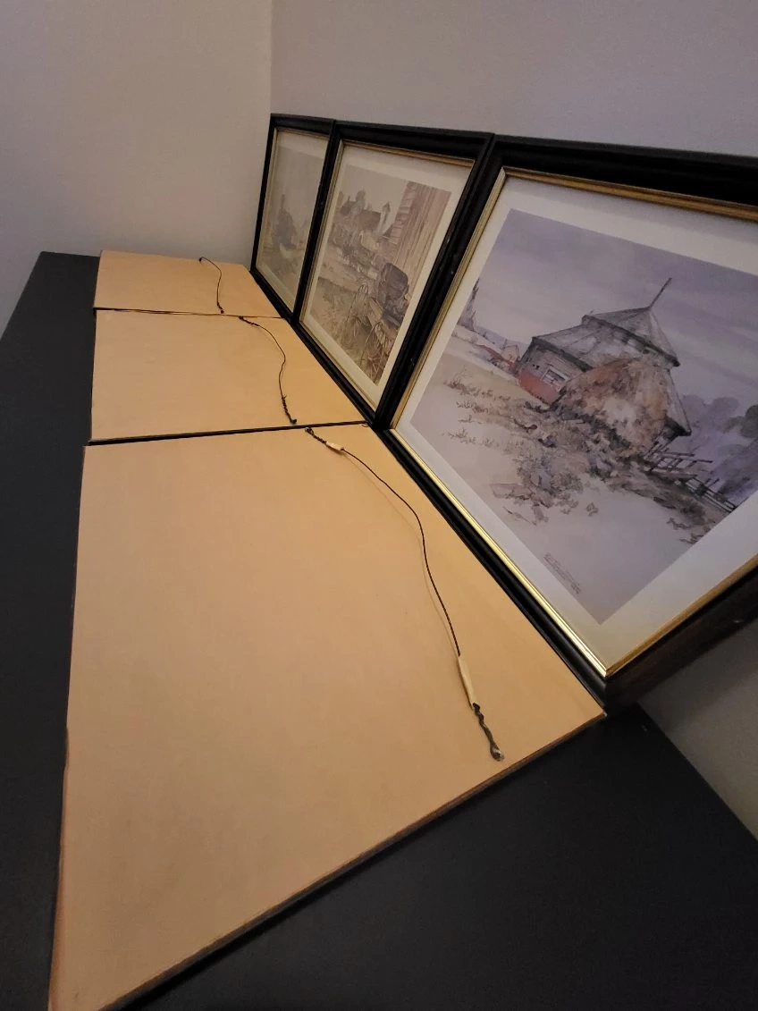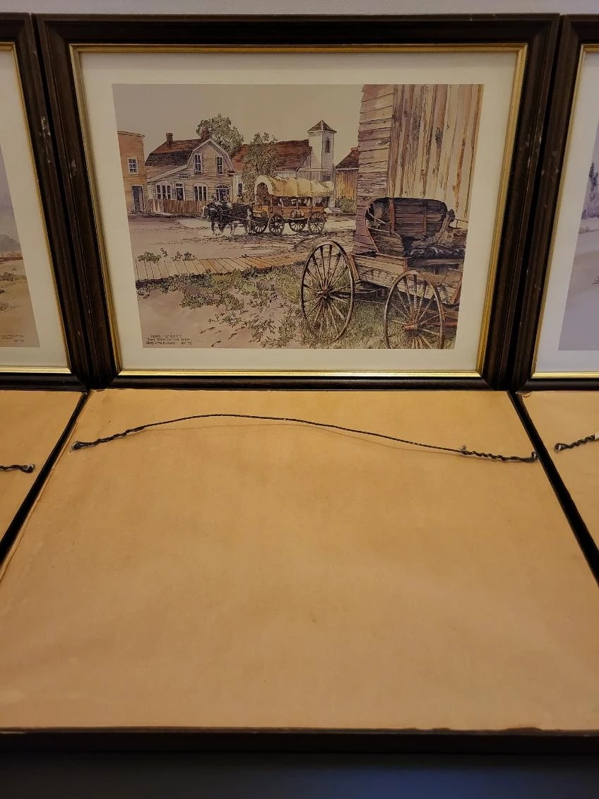 The custom wood frames are in aged condition. Glass is in excellent condition. The prints are enclosed and sealed. No tears, rips, or folds.
