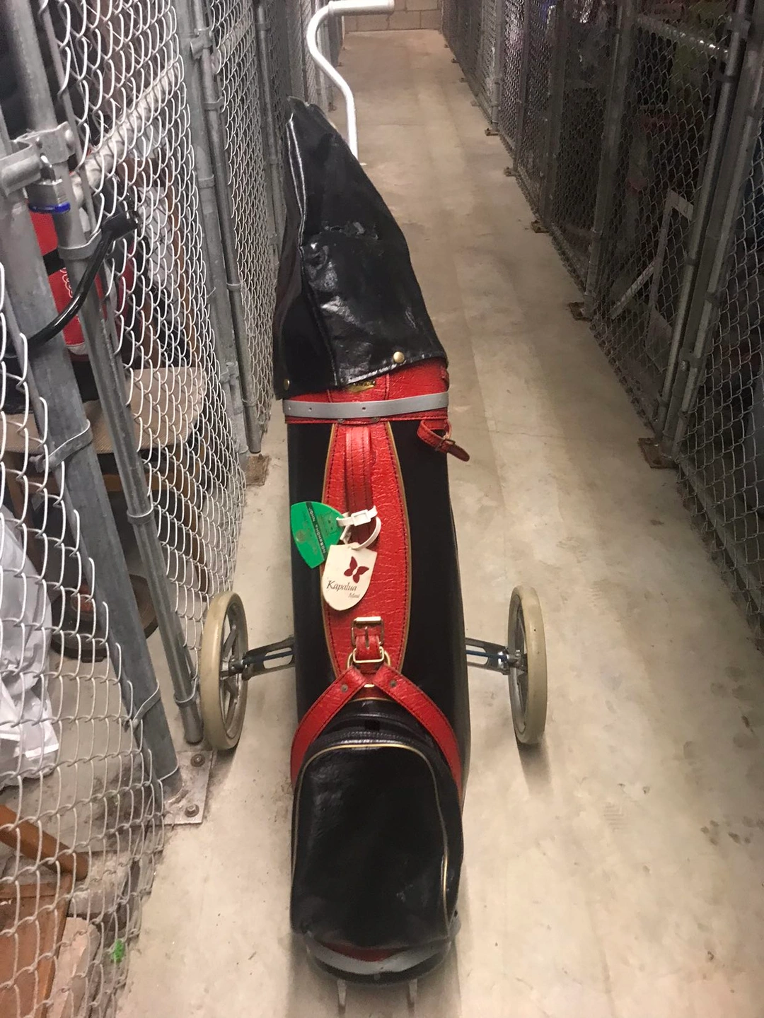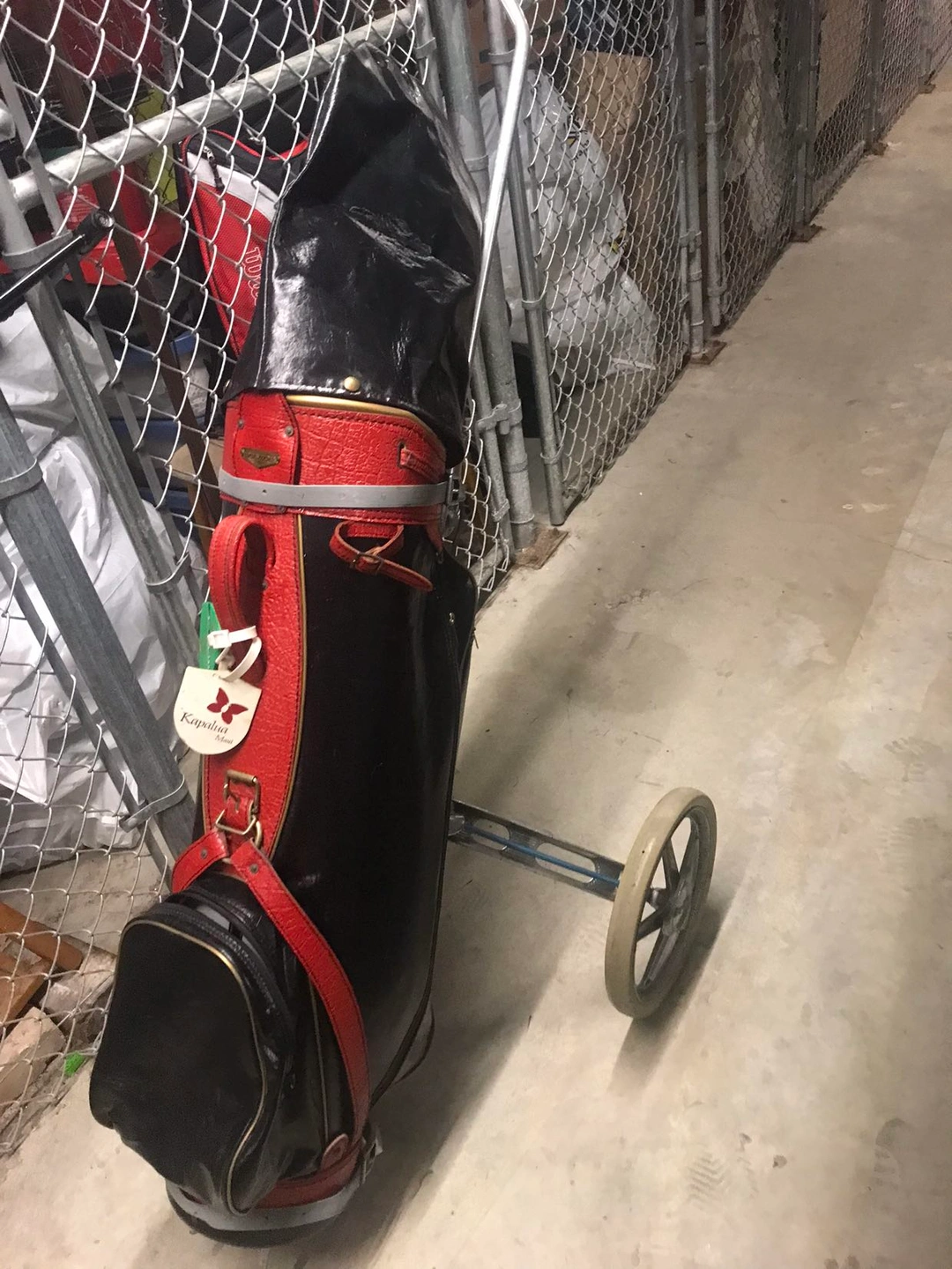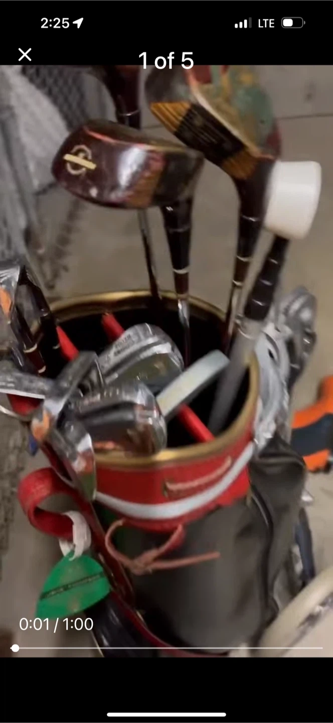 Great set of Dunlop caddy, Bag Boy golf cart and MacGregor club set, wooden drivers with metal on the front.