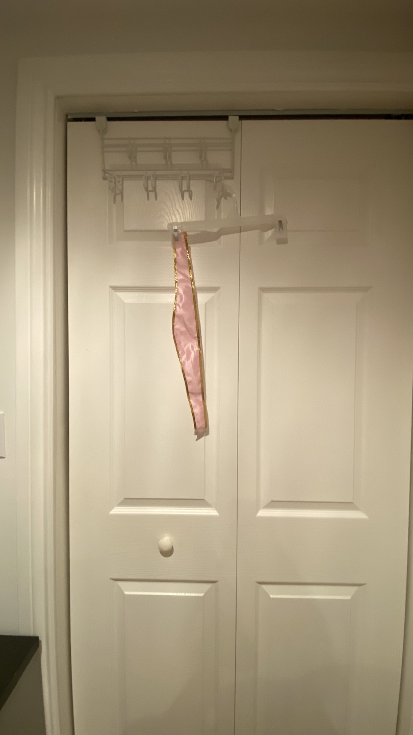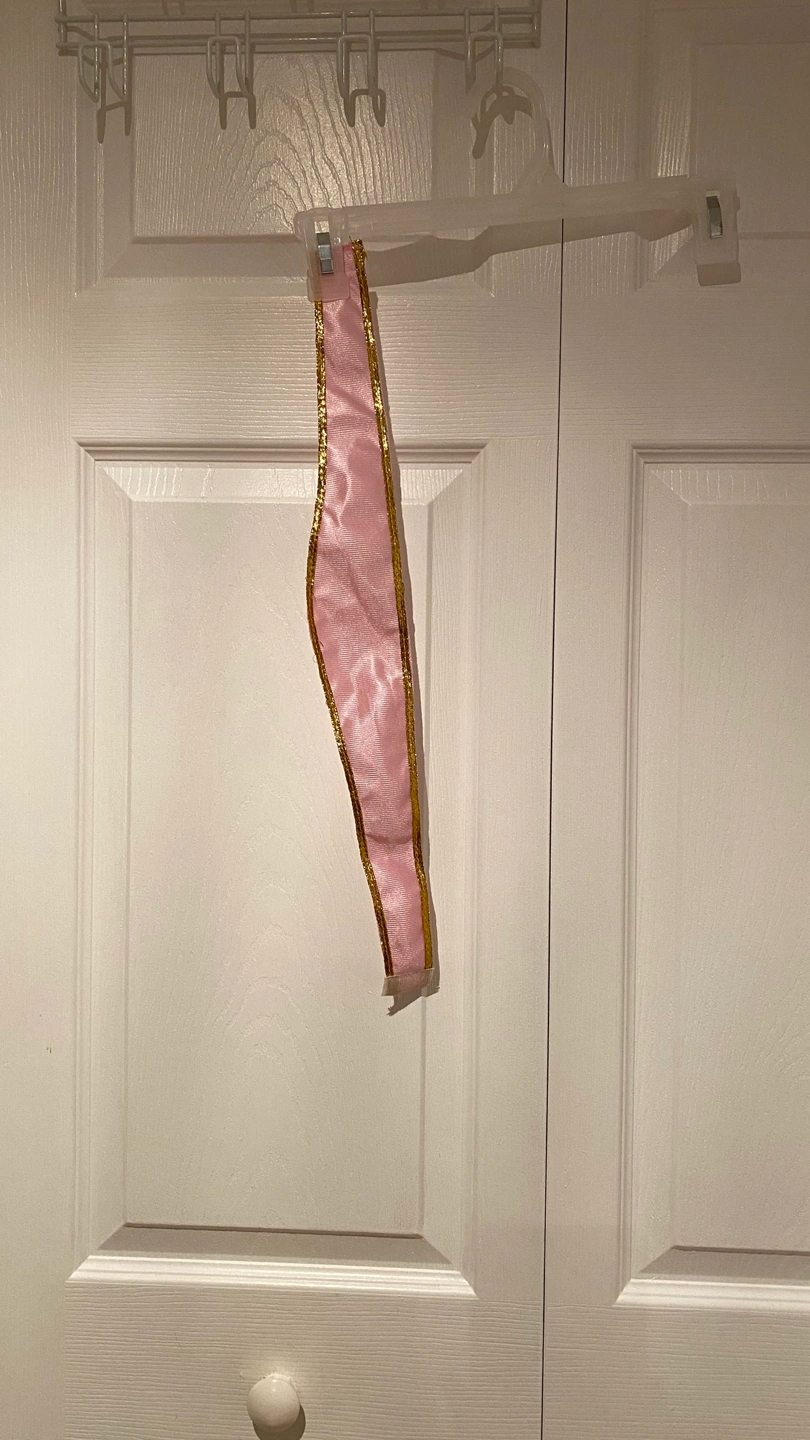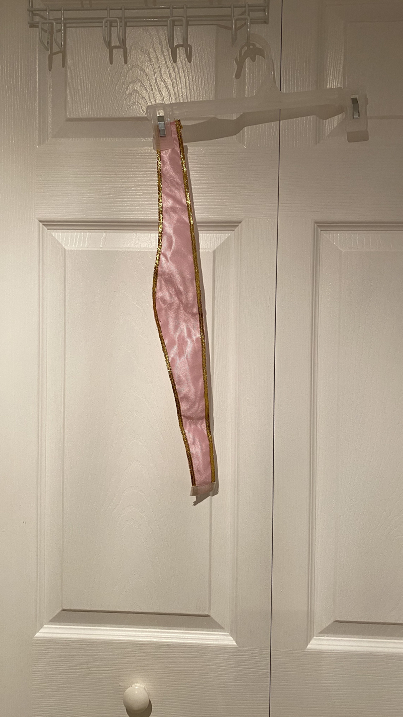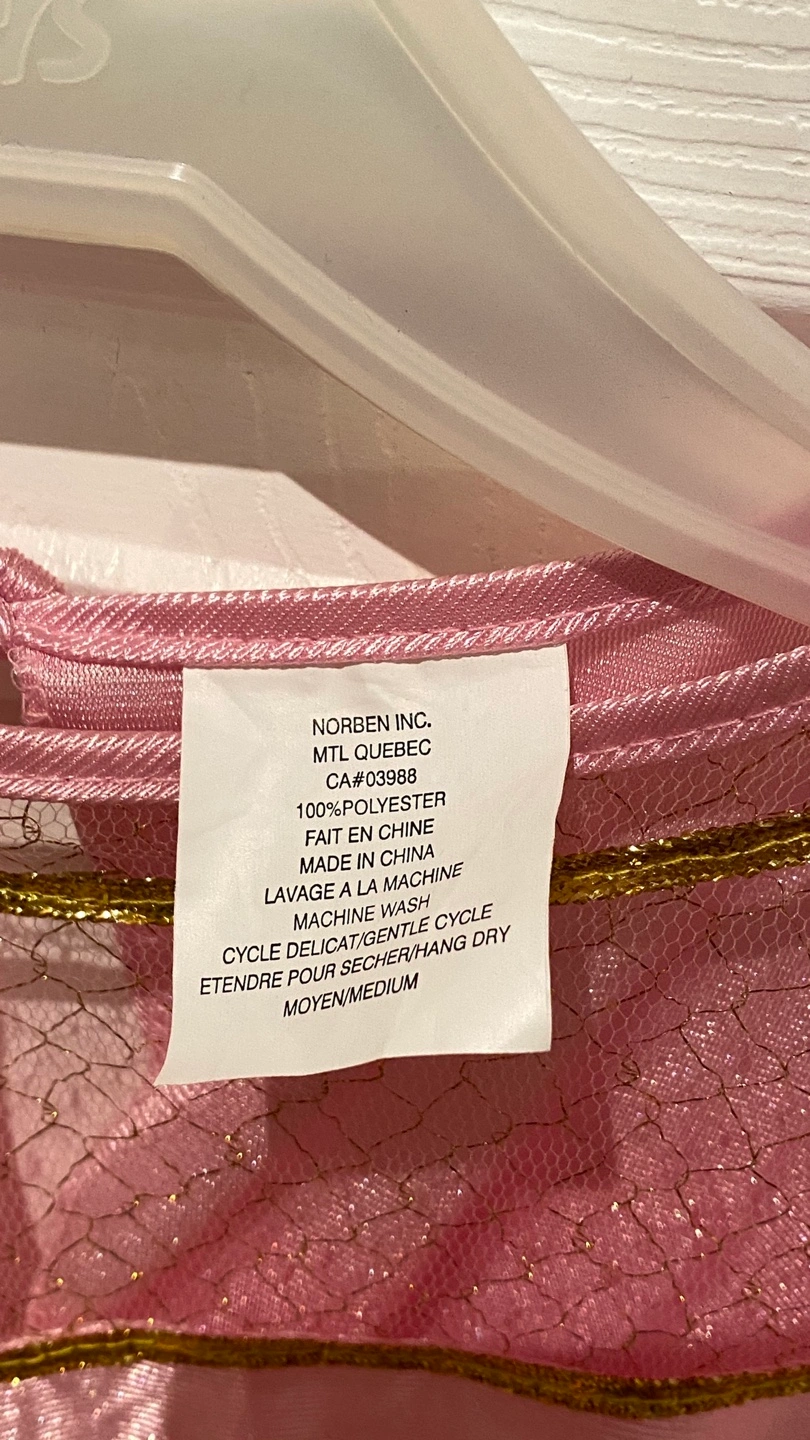20Girls Princess Costume, Dress, Skirt wrap, Belt and head band, Pink with Gold Trim, Good Condition