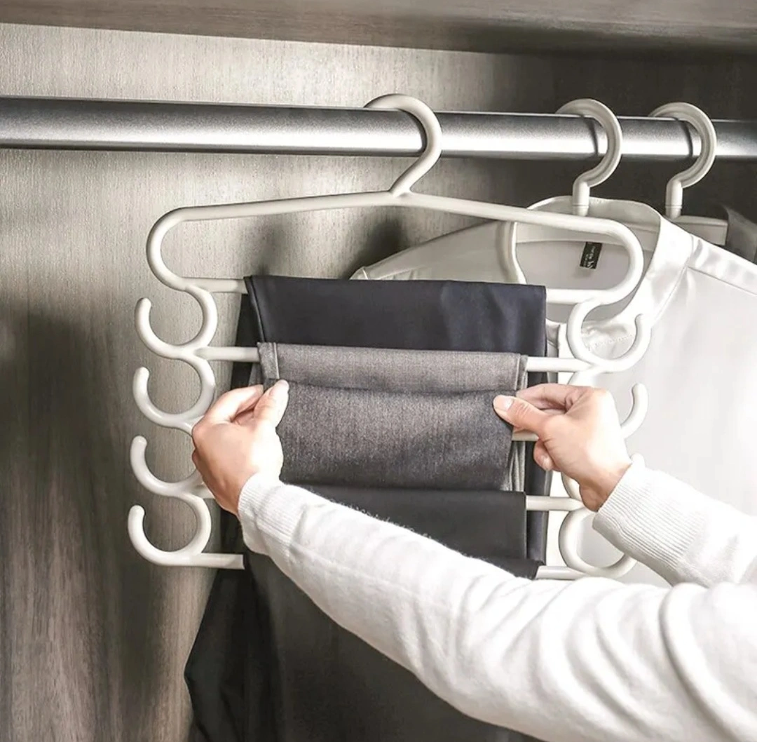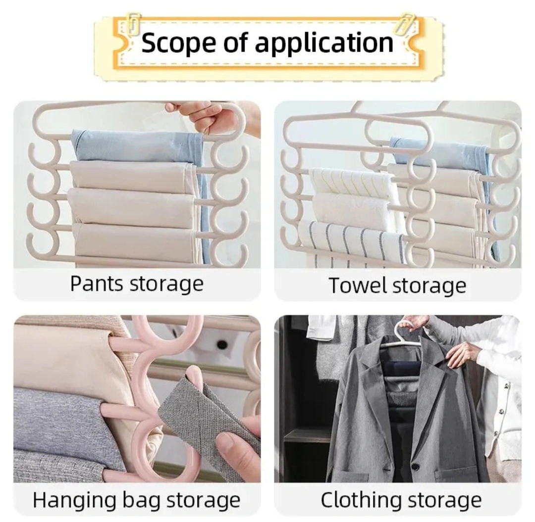 1 pc Pants Rack Multifunctional Household Saving Space Multi Layer Trousers Hanger Pants Closet Color Clothes Peg 5 Layers