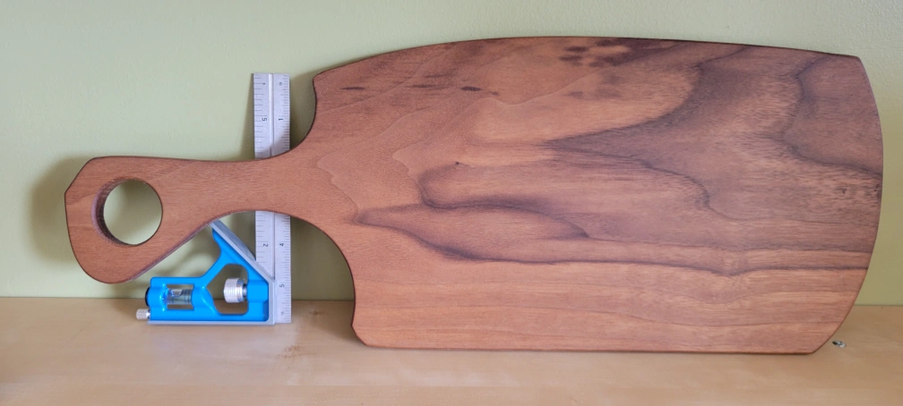 hand made from walnut, has been conditioned and waxed with food safe 'walrus wax'