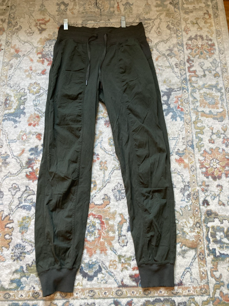 Lululemon dance studio joggers size 4. Beautiful dark olive green. Waist 27 inches and length 27 inches. In great condition. Only selling because they are a bit tight on me. Pick up in Millwoods from a pet and smoke free home. South side meet up also an option.