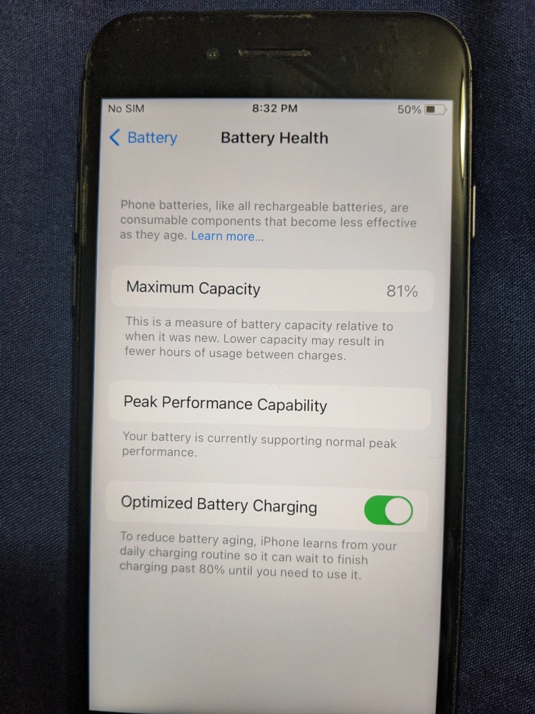 Battery Health at maximum capacity 81%.