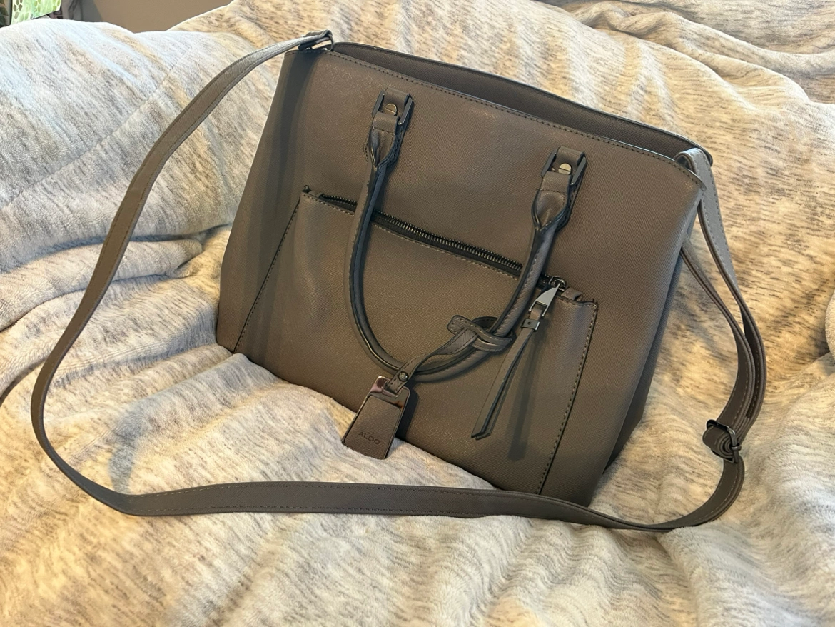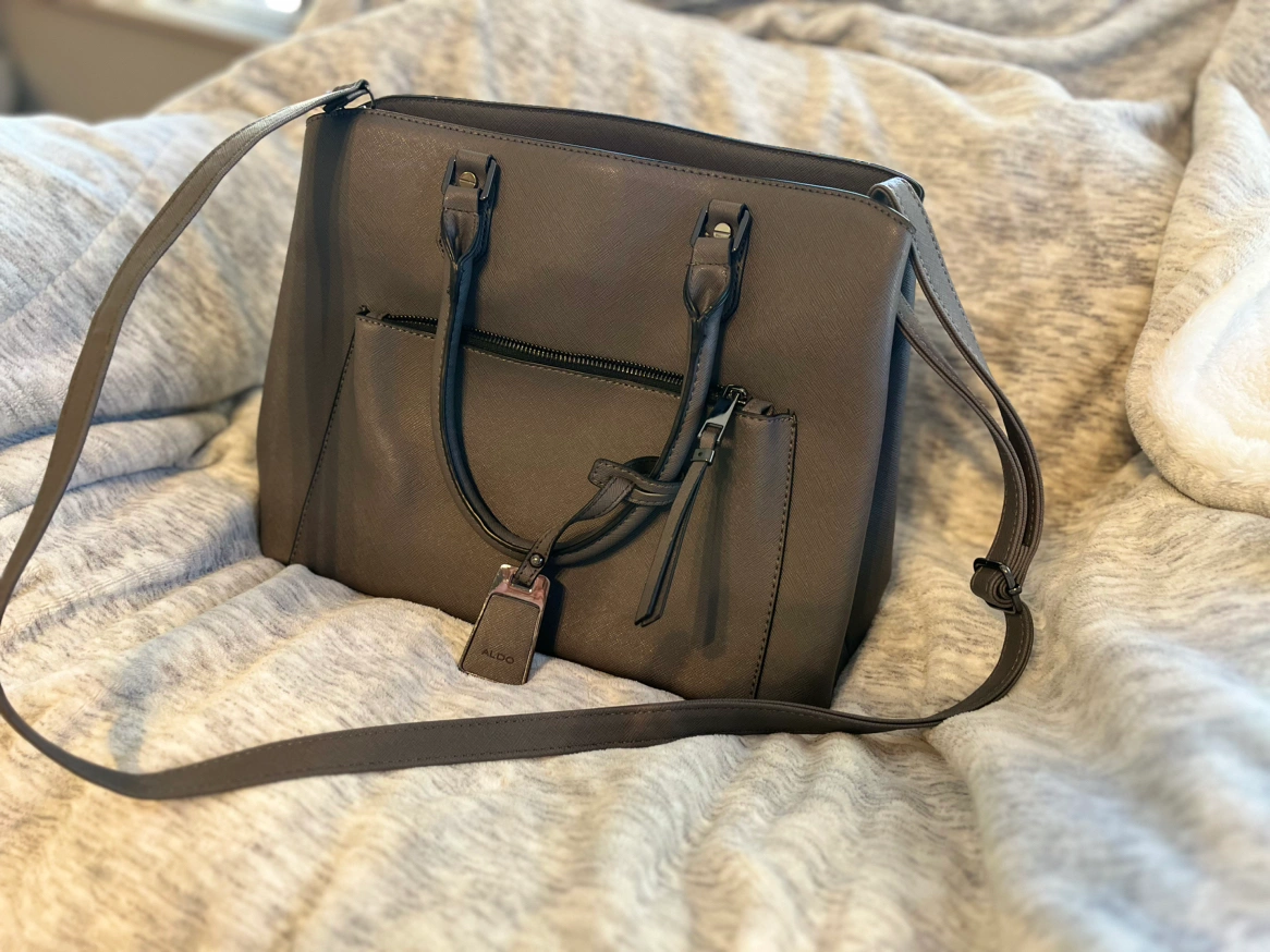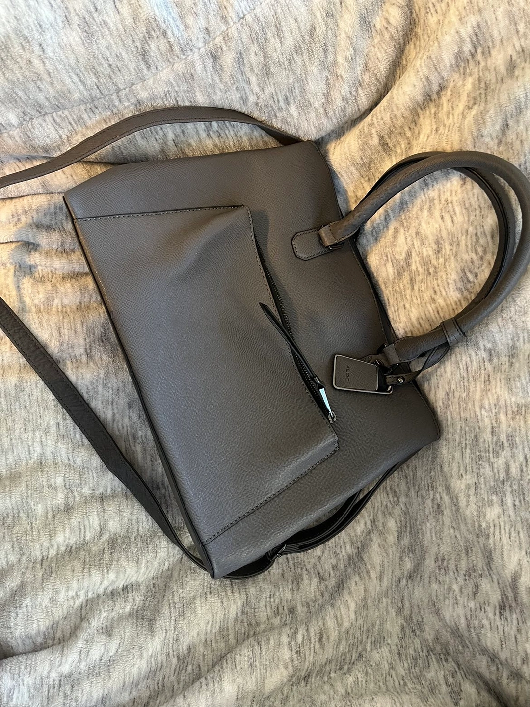Grey shoulder/cross body bag, used once. Zipped compartment inside and side pocket