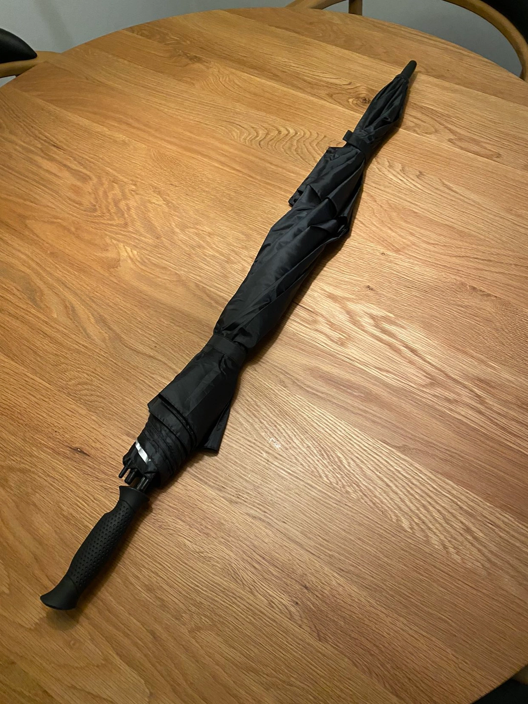 • Stay dry in wet weather with the Raintech Auto Open Double-Canopy Jumbo Umbrella