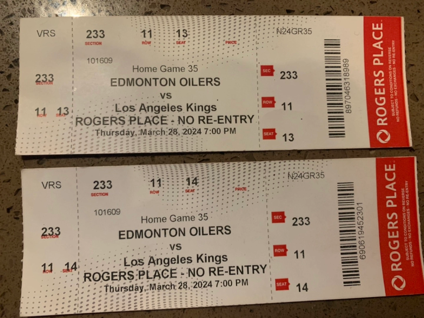 I have two tickets for Oilers vs LA Kings game on March 28 that I would like to trade for March 2nd tickets. My friend is heading back home before March 28th so we thought we’d attempt a trade so we could still enjoy a first time experience at a Oilers game. And if not, I’ll be selling em and open to offers :)