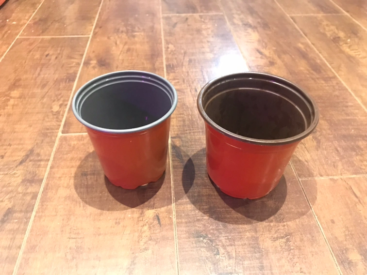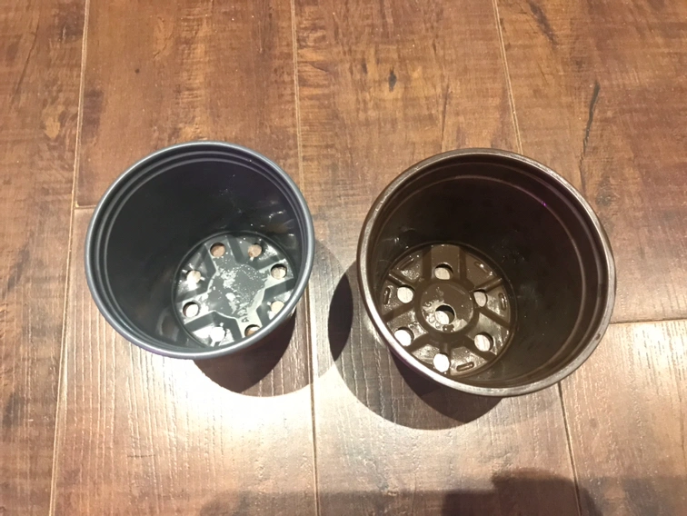 2 plastic nursery posts with drainage holes.