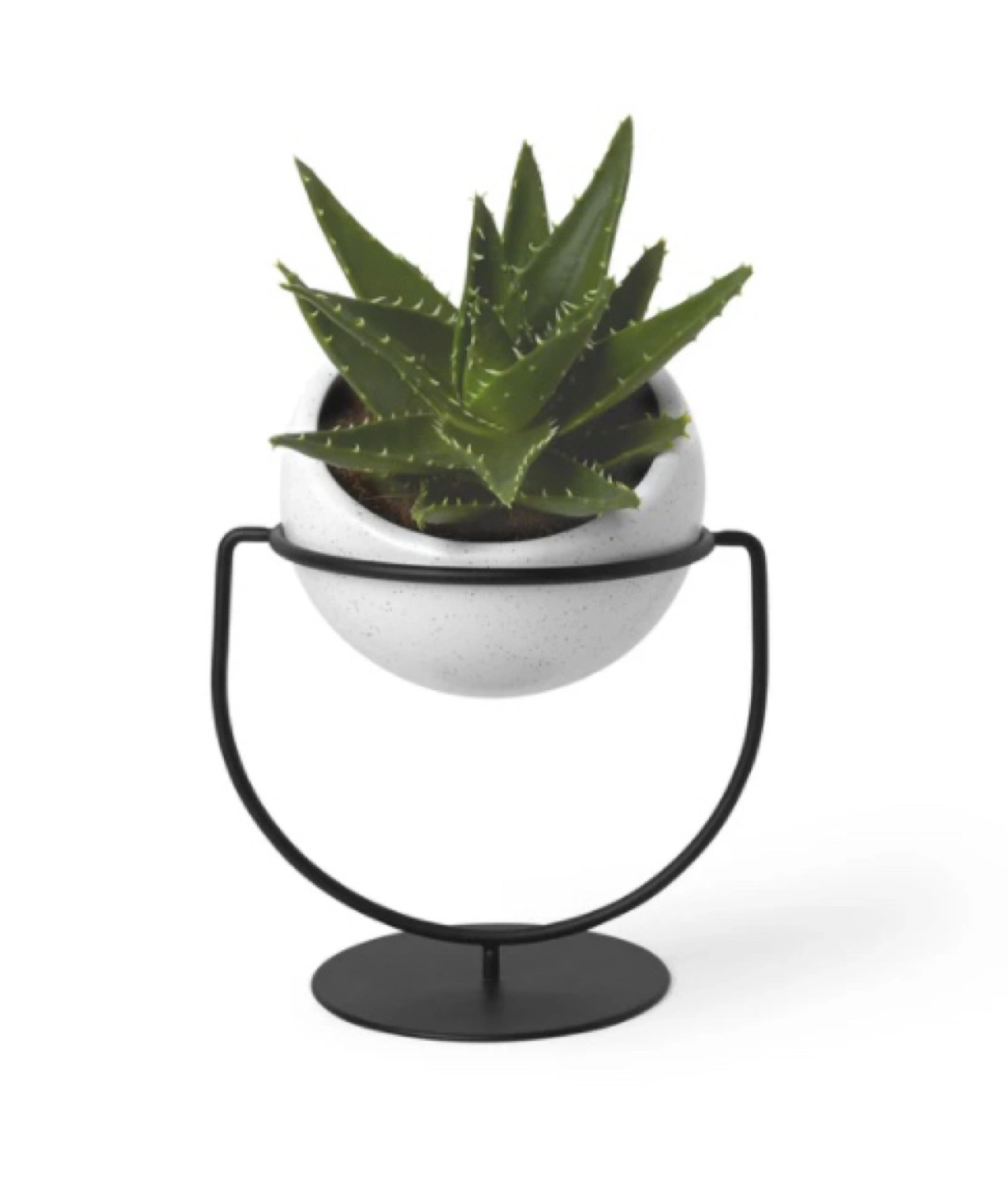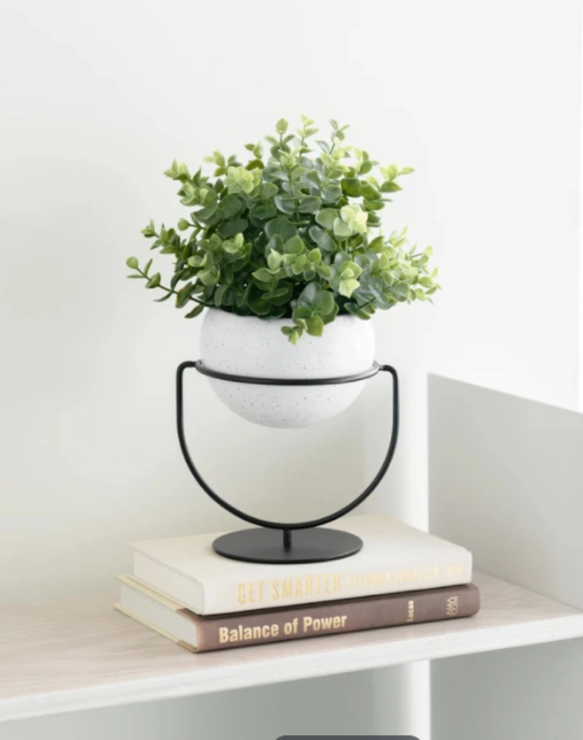 * Attractive Modern Finish: Nesta’s white ceramic planter features a speckle print and the stand is made of sturdy black powder-coated metal