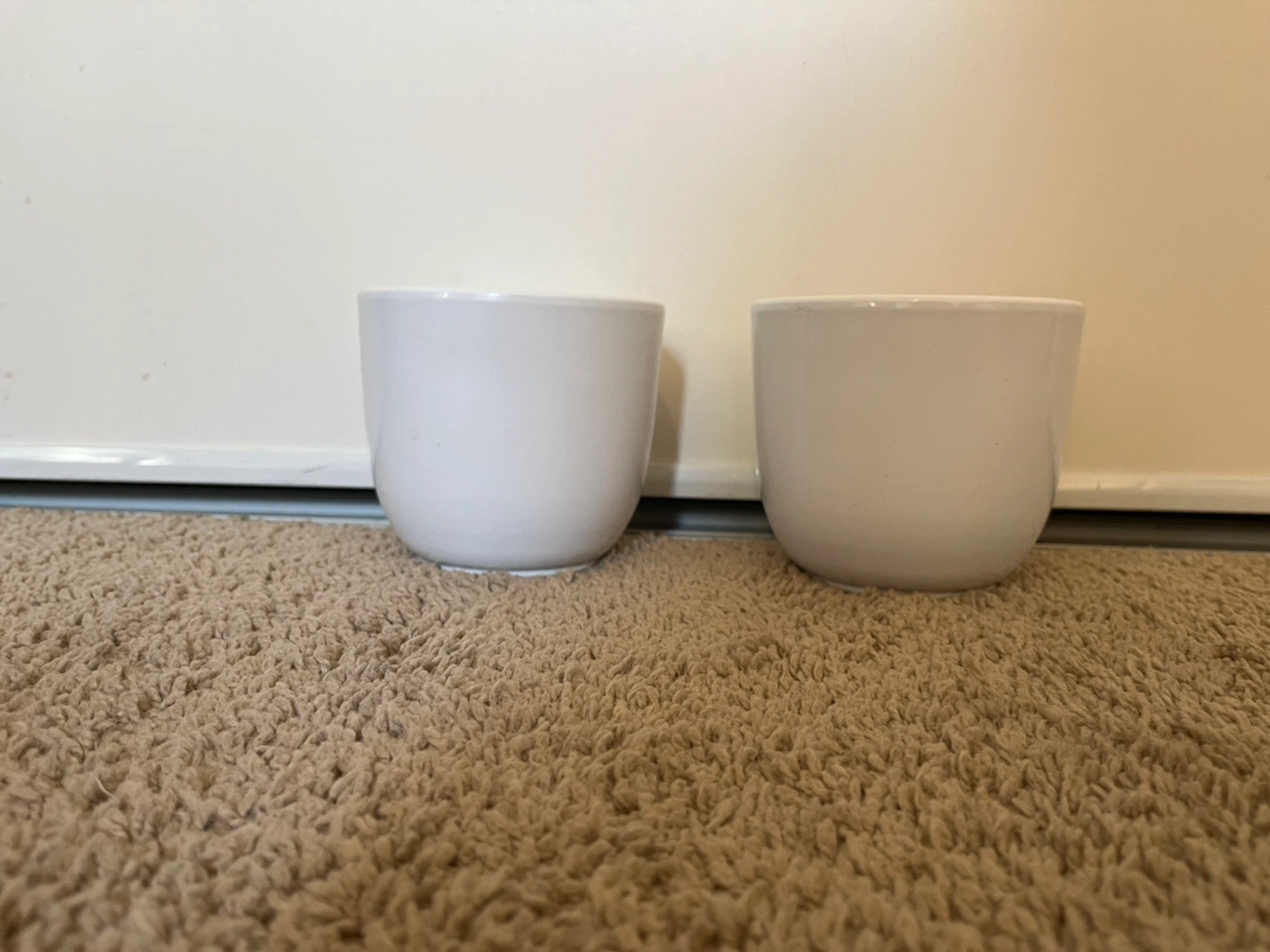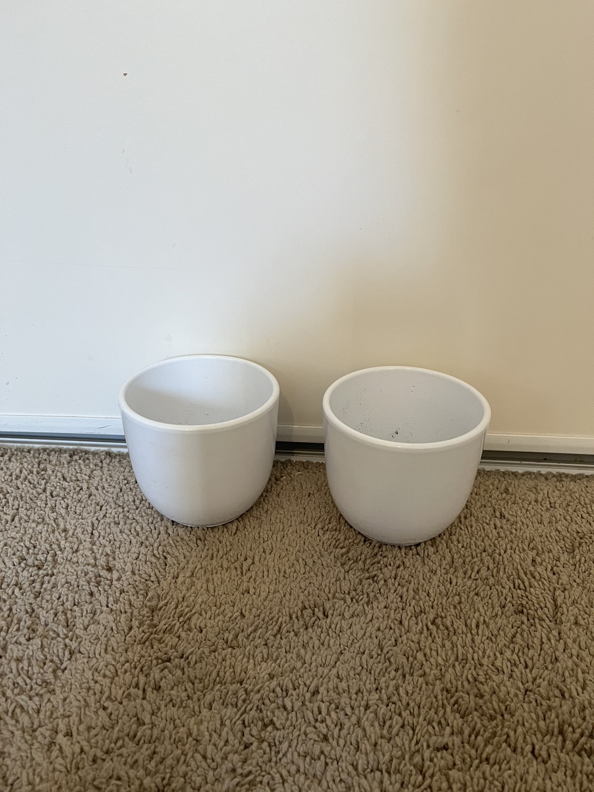 Just need a good clean. Great condition otherwise. White ceramic glazed pots. 1$ each.