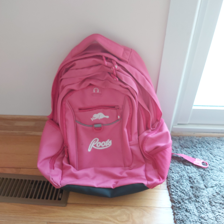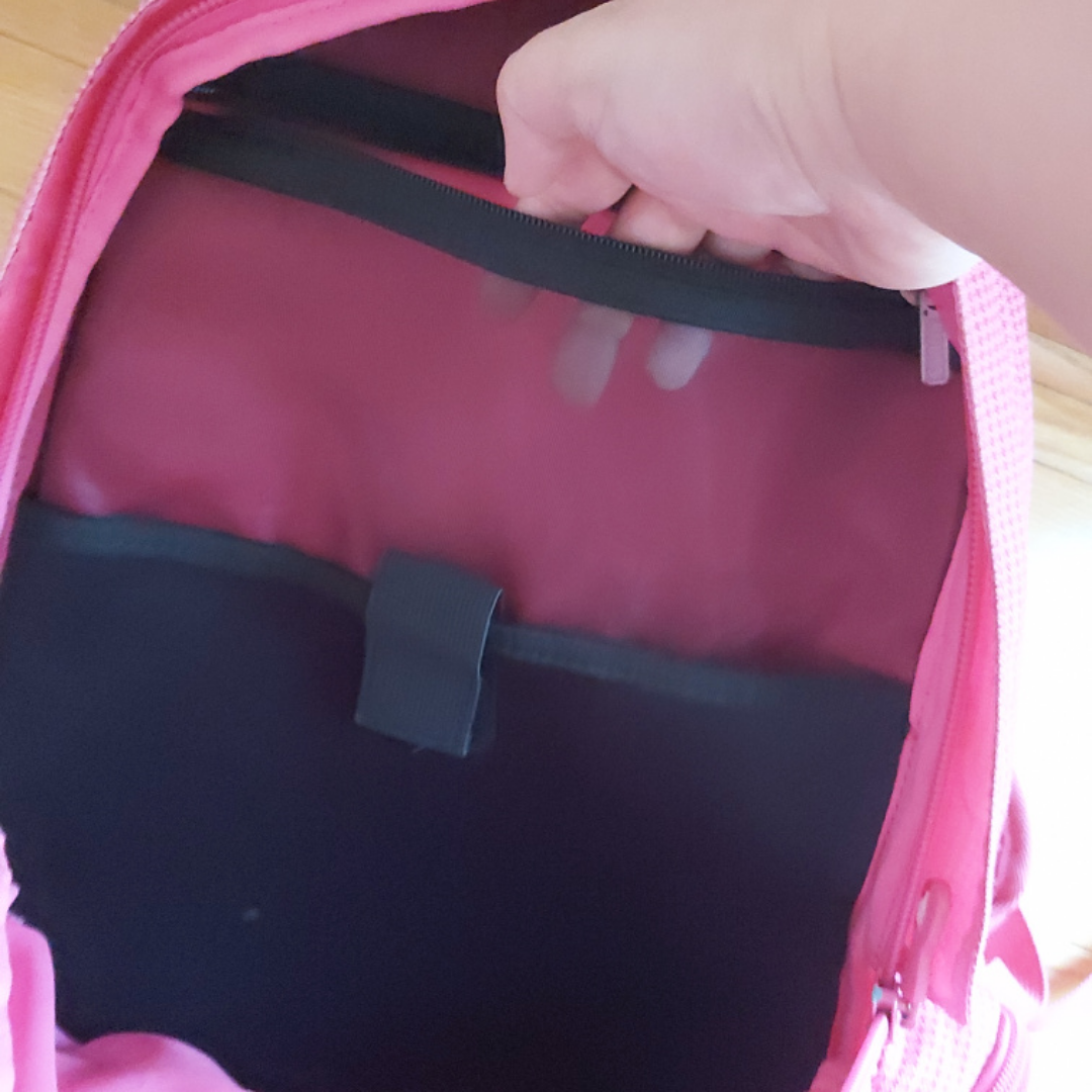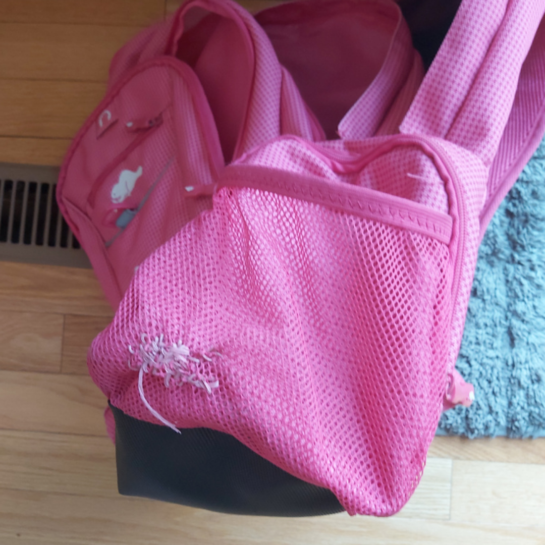 the black and aqua originally on this post were given away! Yay! Just the pink one is left. The pink backpack is the best one of the lot but I had patched the hole in the waterbottle holder it would probably look better if you remove it altogether.