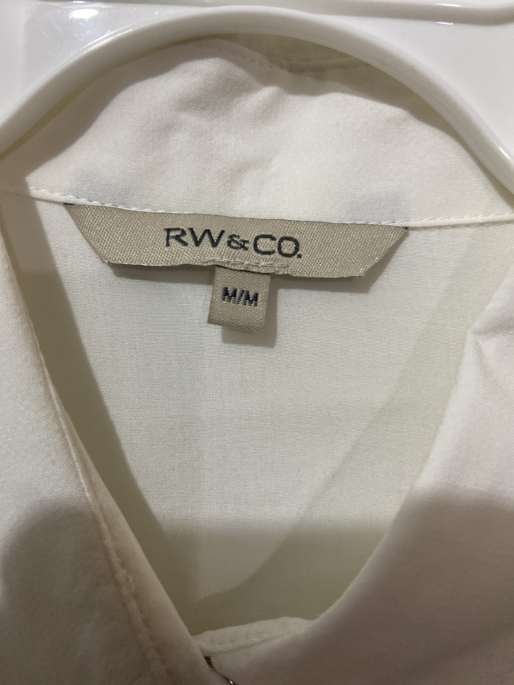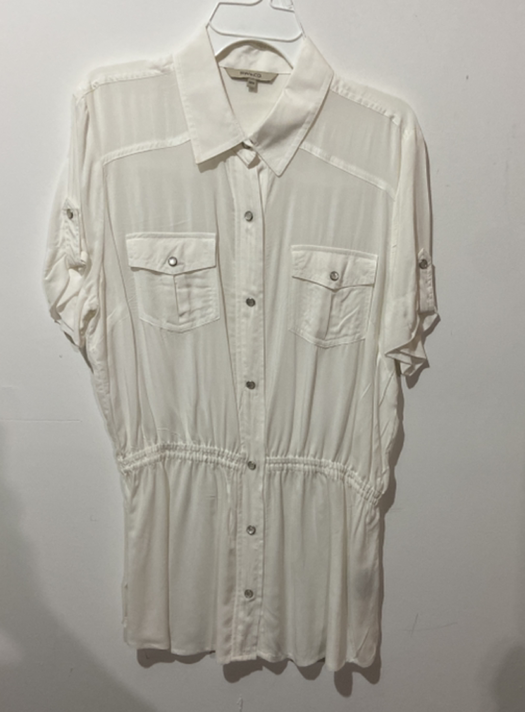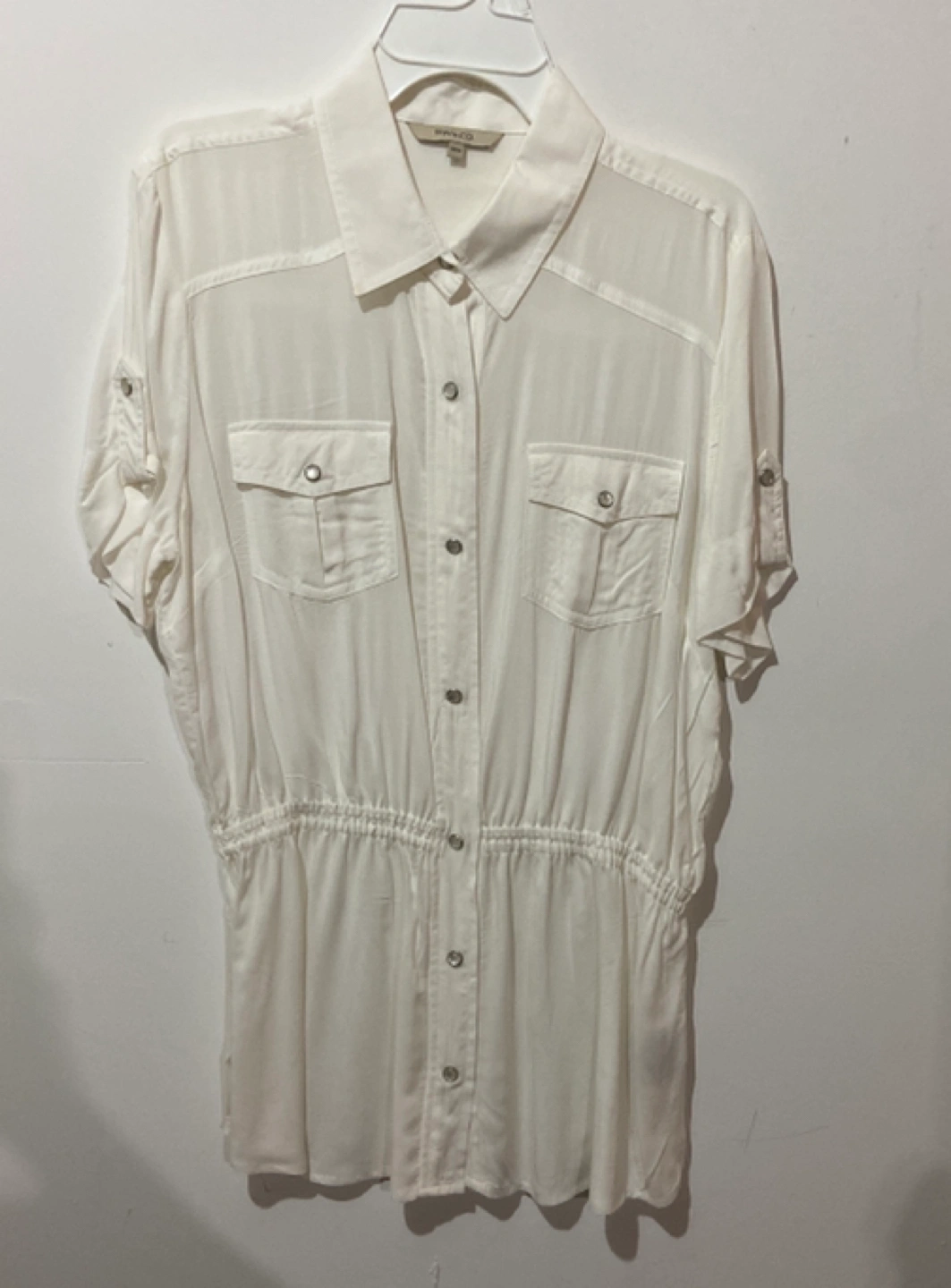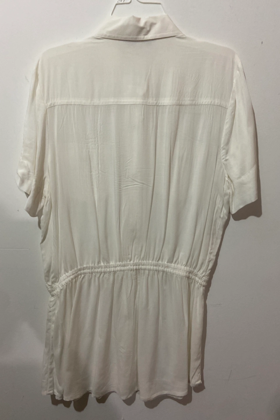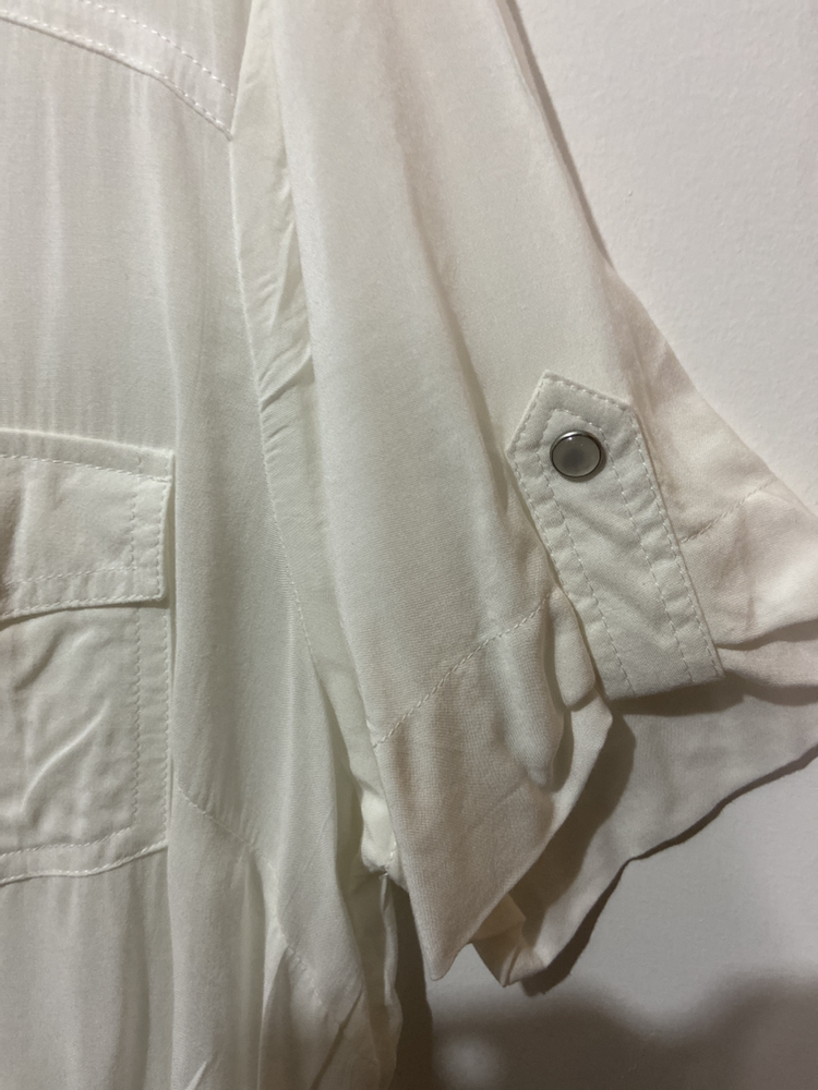 Cream coloured blouse/top made of viscose with pearl coloured snap buttons. Great casual look for work or play! Another easy wear, easy care piece.