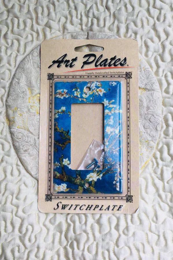 Handcrafted metal switch plates Van gogh almond blossoms, single rocker. Made in USA