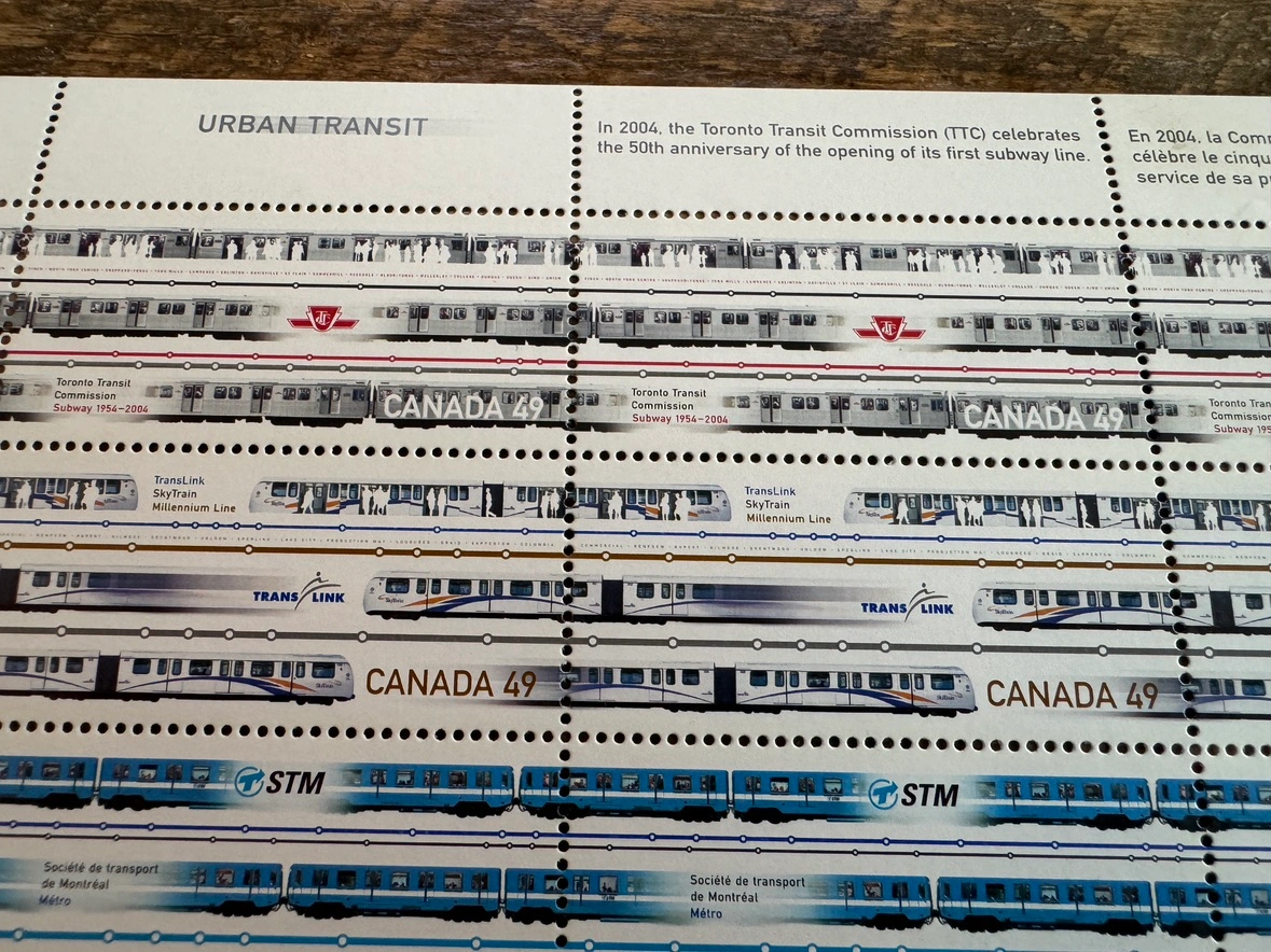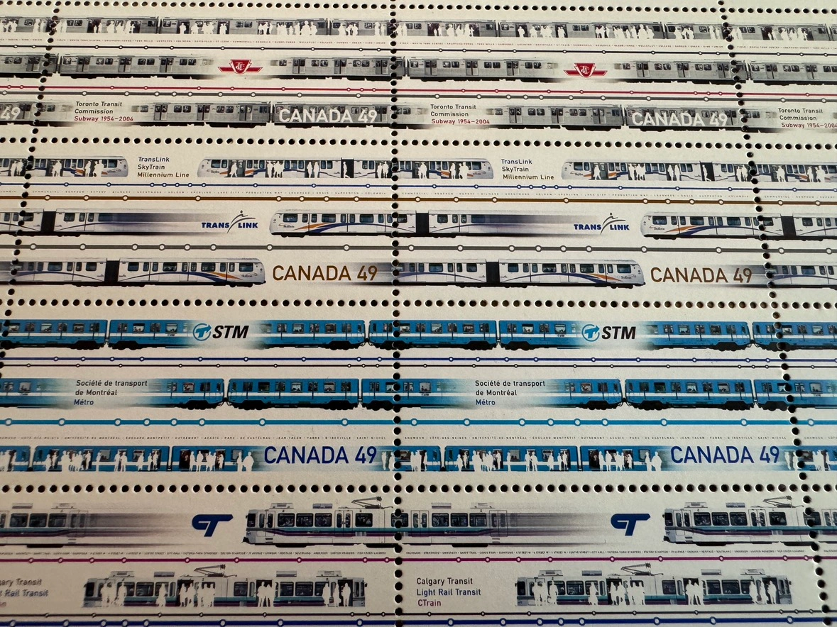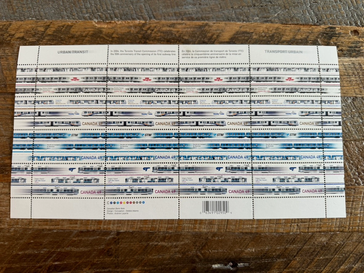 I’m selling this sheet of uncut Urban Transit stamps from 2004. They show all the modes of Urban trains in Canada. The pics show you everything. Message me with any questions.