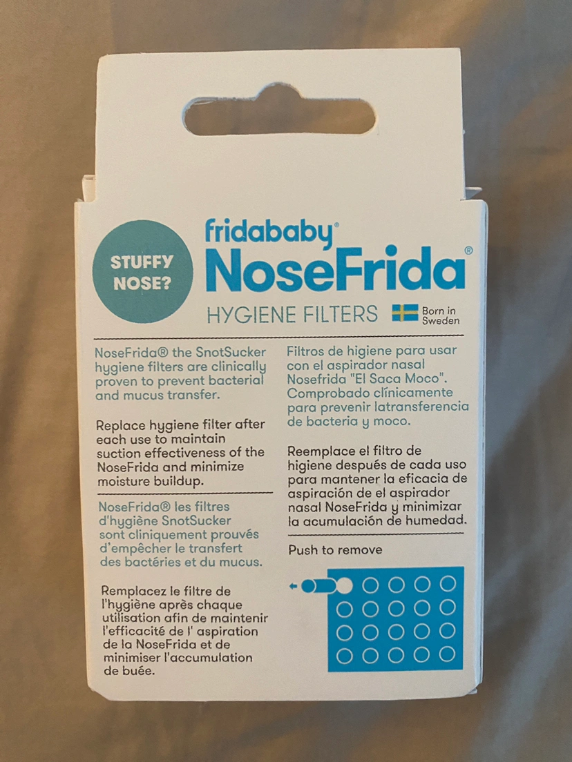 Each box contains 20 disposable filters. For use with the Frida Baby's Nasal Aspirator NoseFrida The Snotsucker.