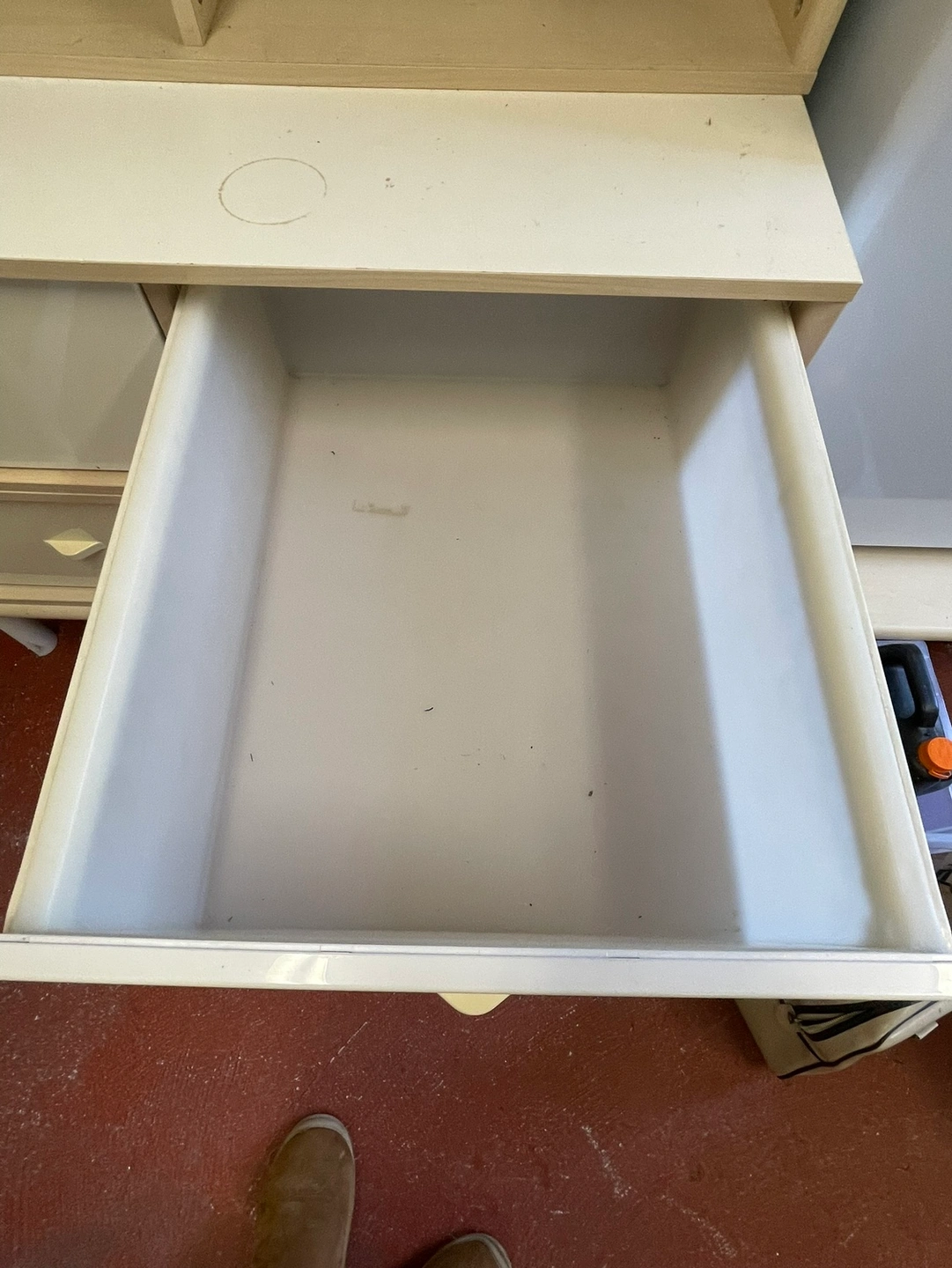Multiple uses for this now discontinued IKEA KÄMPE units. Very sturdy with easy gliding drawers and plinth to keep unit off the floor.