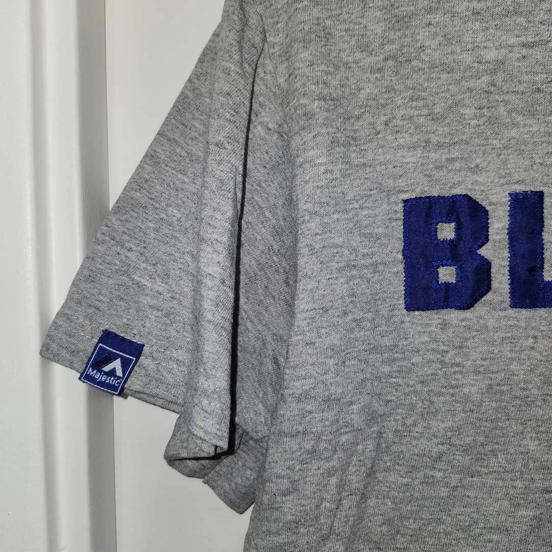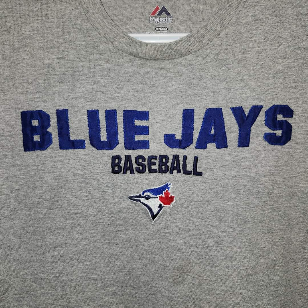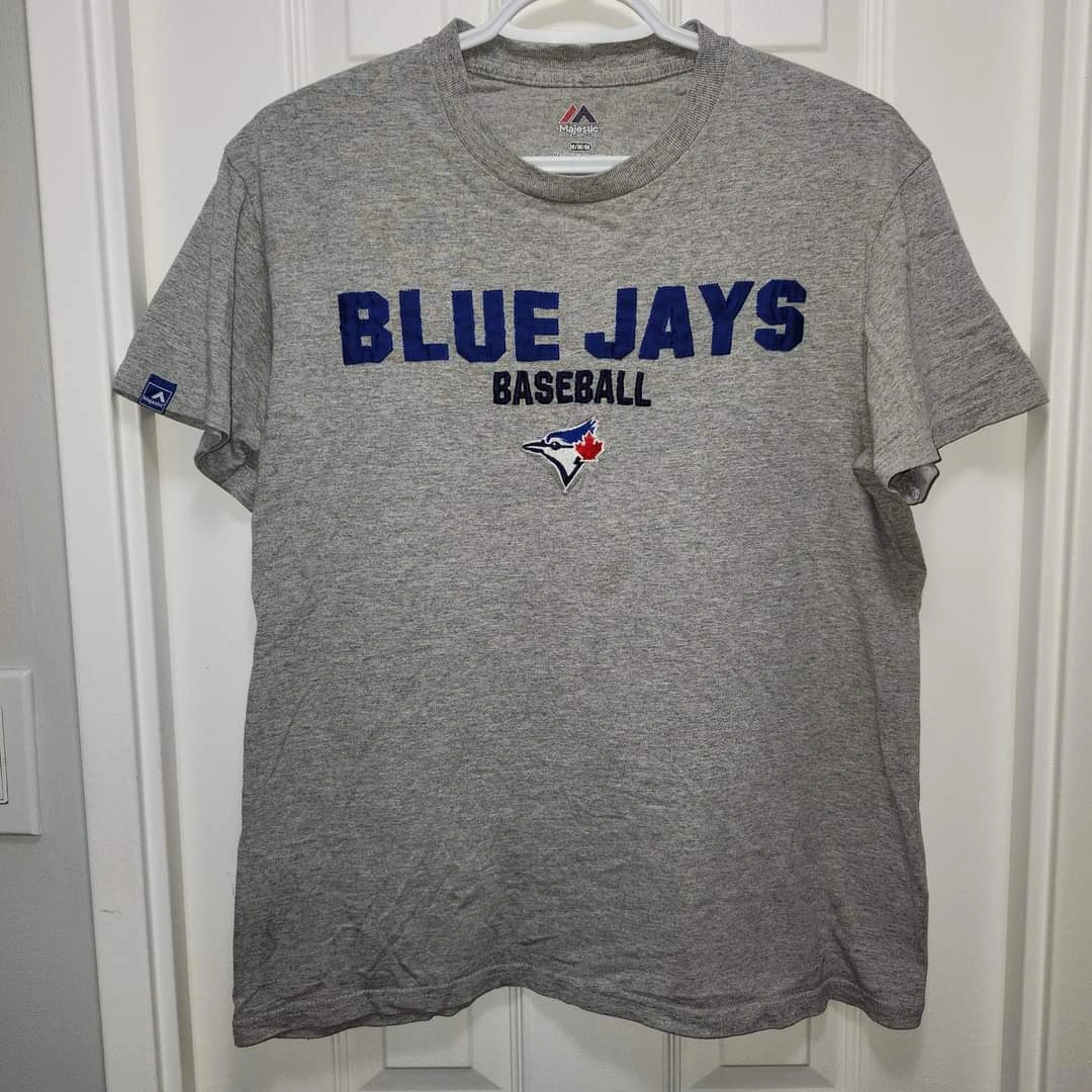 $17. BLUE JAYS T-SHIRT by Majestic. #M #Medium Gender Neutral Fit. Gray T- Shirt. EUC. EMBROIDERED. LOGO. & *BASEBALL*.