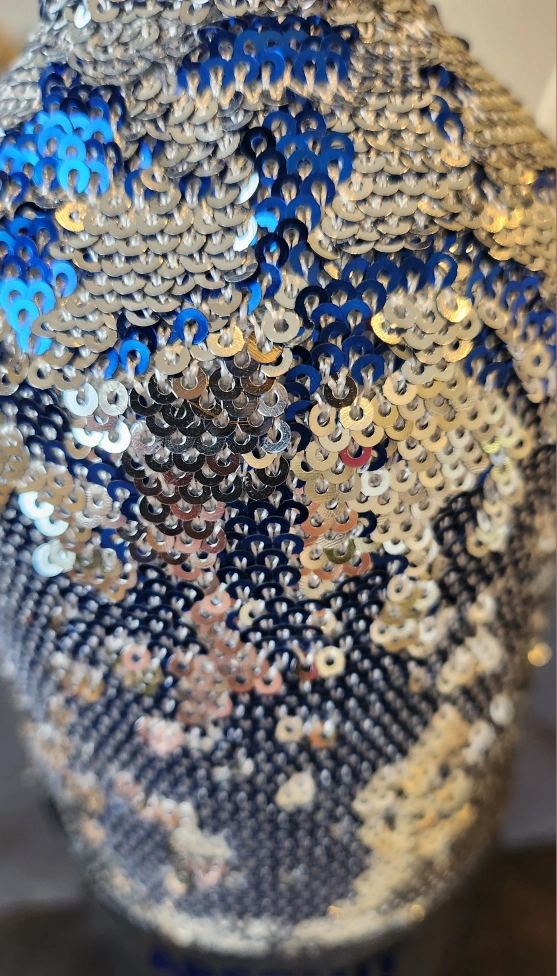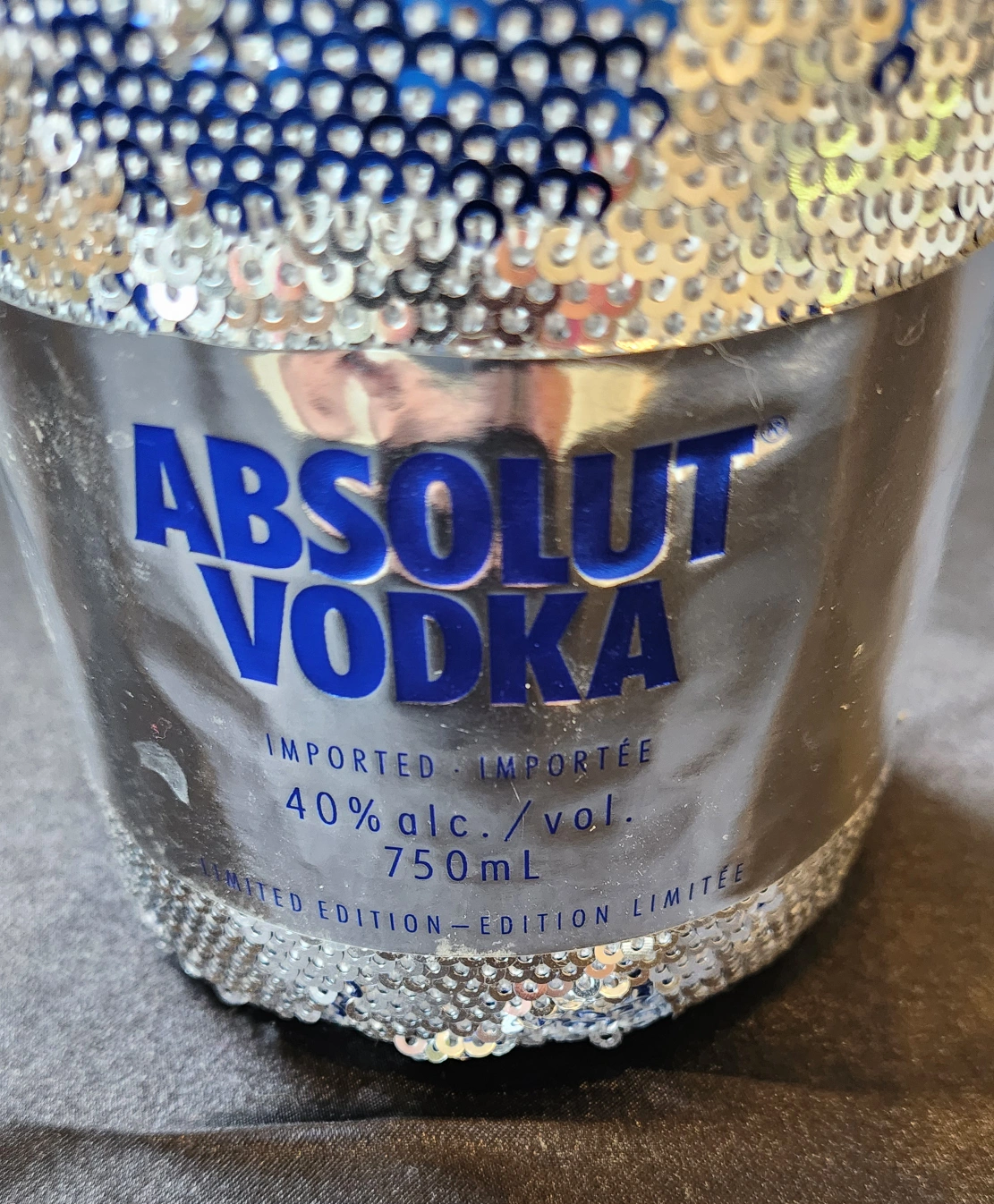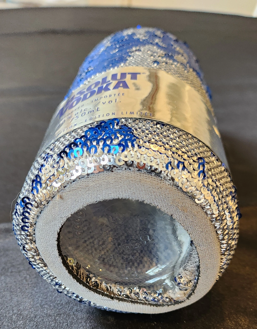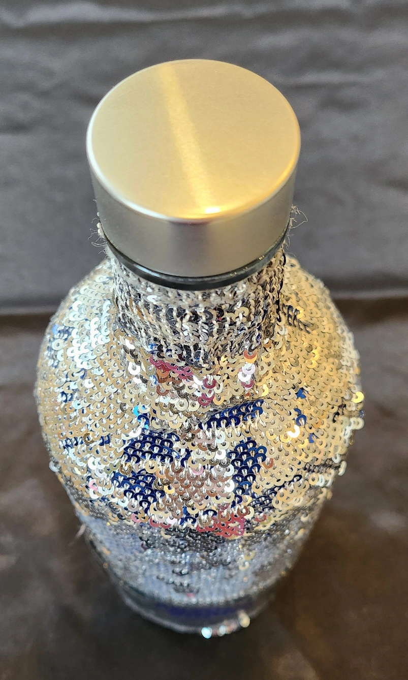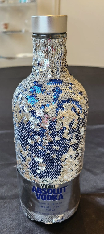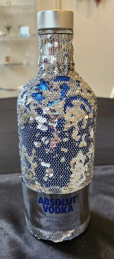 Giving away this pretty blue and silver, Absolut vodka bottle .
