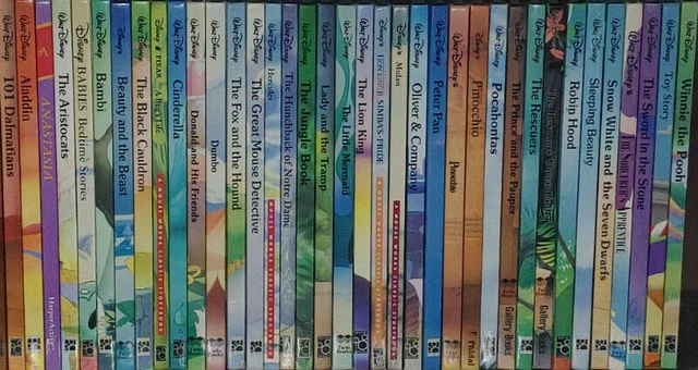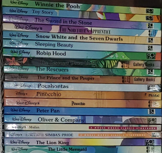 Selling a set of 37 Disney oversized hard cover books published by Mouse Works & Gallery. Originally retailed for over $400, asking $150 firm. Titles include: 101 Dalmatians, Aladdin, Anastasia, Aristocats, Babies Bedtime Stories, Bambi, Beauty and the Beast, Black Cauldron, Bug's Life, Cinderella, Donald Duck and his Friends, Dumbo, Fox and the Hound, Great Mouse Detective, Hercules, Hunchback of Notre Dame, Jungle Book, Lady and the Tramp, Little Mermaid, Lion King, Lion King - Simba's Pride, Mulan, Oliver & Company, Peter Pan, Pinocchio, Pocahontas, Prince and the Pauper, Rescuers, Rescuers Down Under, Robin Hood, Sleeping Beauty, Snow White and the Seven Dwarfs, Sorcerer's Apprentice, Sword in the Stone, Toy Story, and Winnie the Pooh. These books are used but in good condition. From a smoke-free home. Located in Summerside. Message to arrange a pick up only.