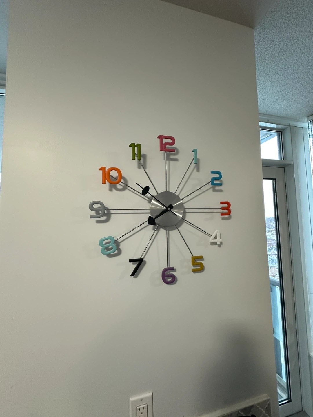 This eye-catching sunburst wall clock features a unique design with colourful, individual numbers. It's a stylish addition that brings a pop of retro modern flair to any room. The metal frame and vibrant digits create a playful yet functional timepiece.