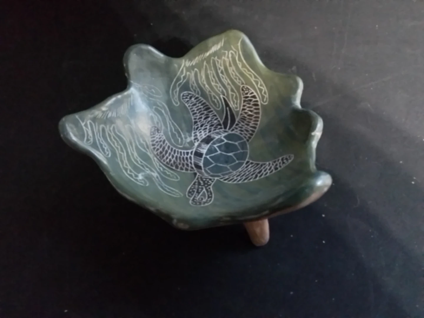 Selling a unique green stone trinket dish featuring a turtle design! It's perfect for holding small items or as a decorative piece