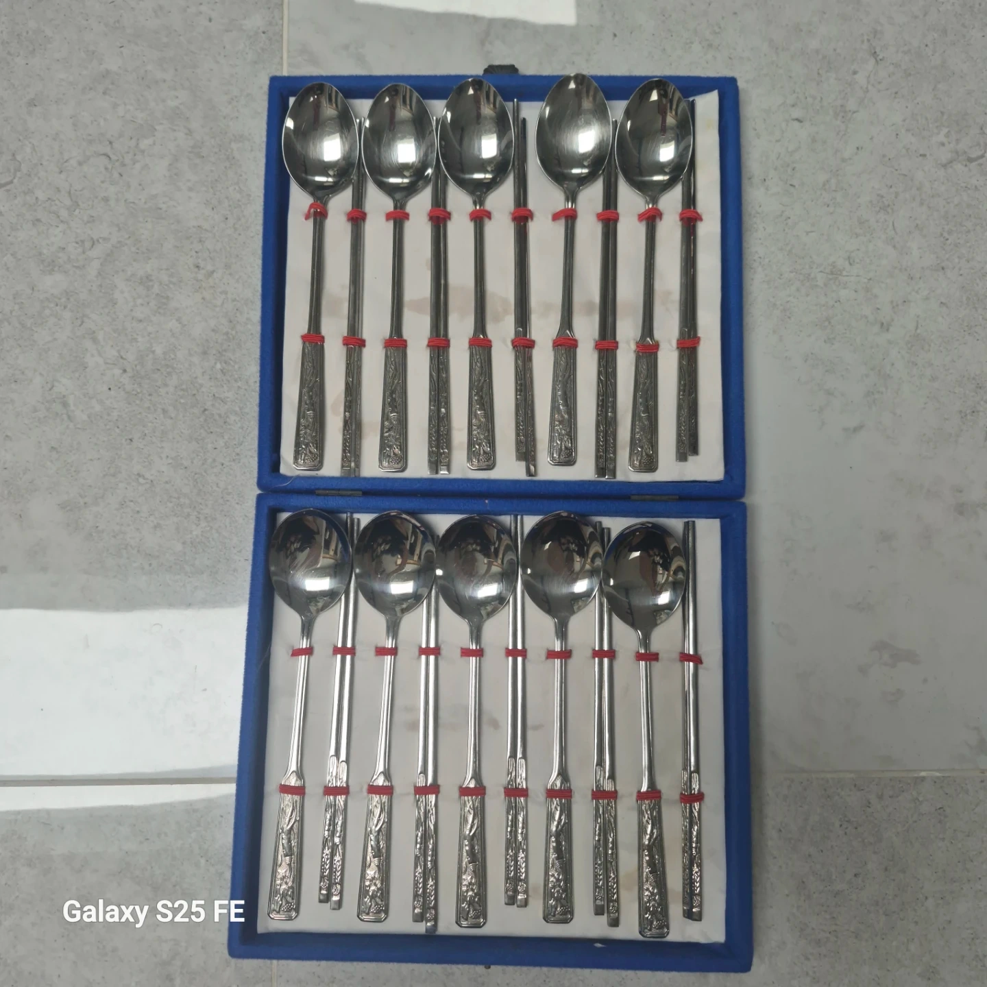 Set of 12 Stainless Steel Spoons and Chopsticks