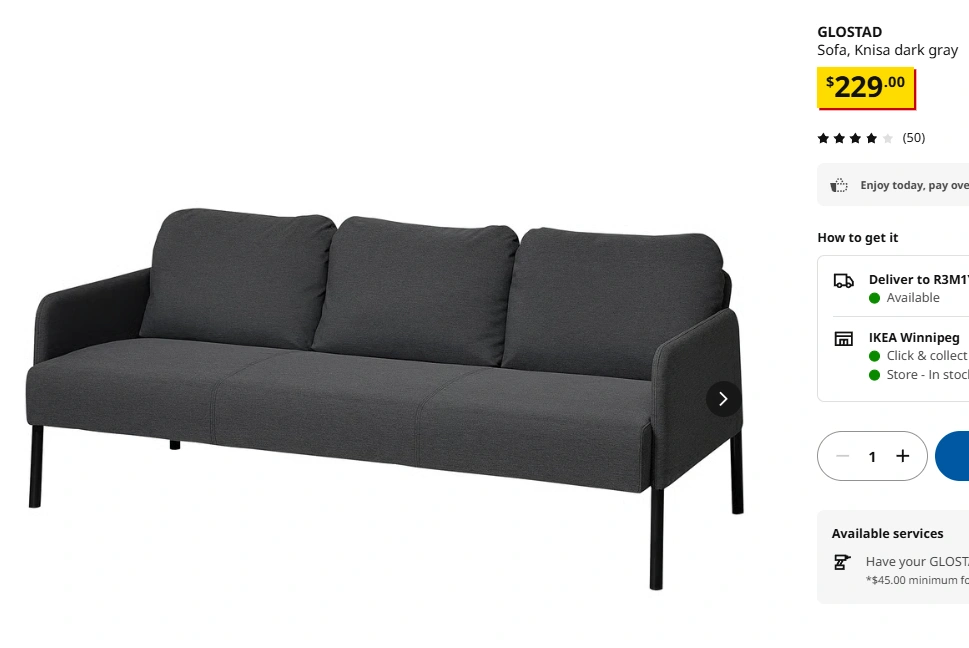IKEA GLOSTAD Sofa – Dark Grey | Like New | Moving Sale