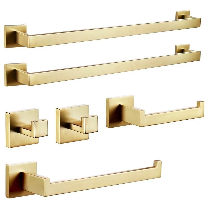 New 6-Piece Bathroom Towel Holder Set Brushed Gold B05A6-BG