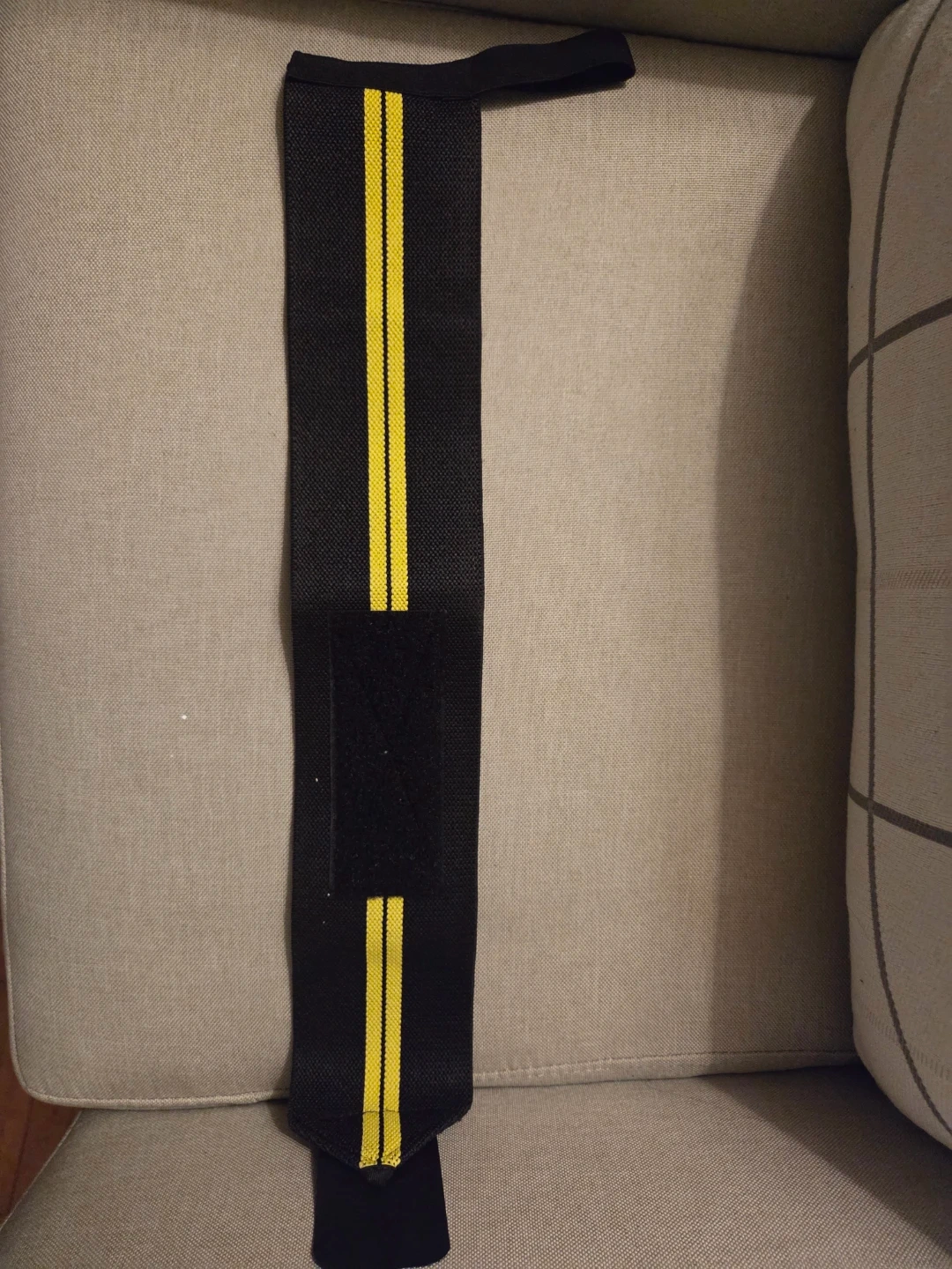 Wrist wraps designed for support during weightlifting or other strenuous activities. Features adjustable hook-and-loop closure for a secure fit. Durable material with reinforced stitching.
