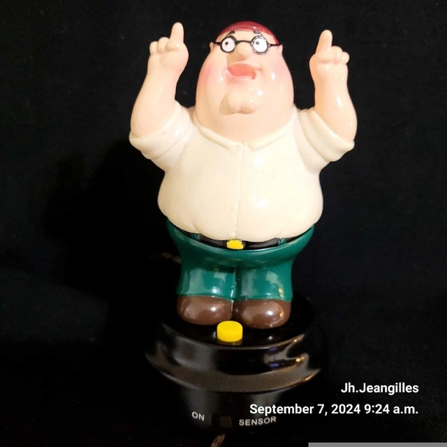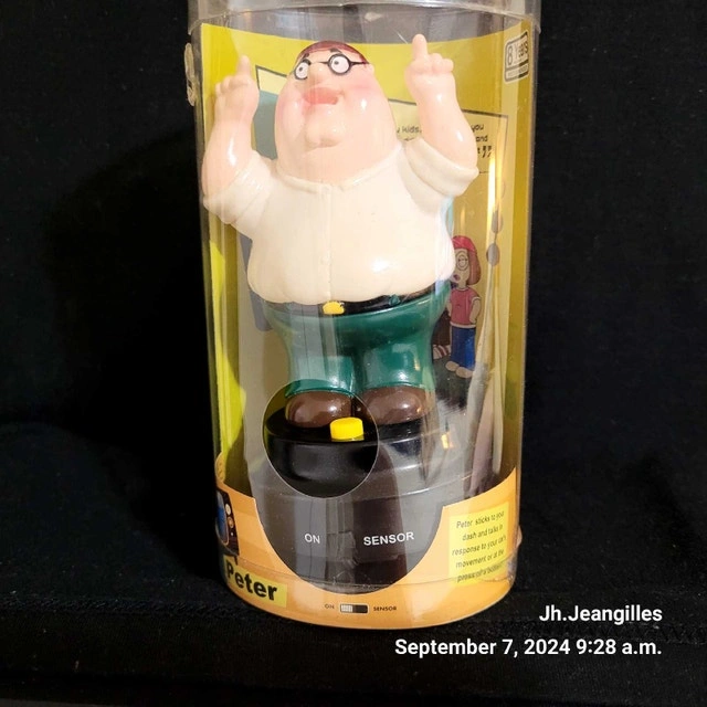 2005 Vintage Family Guy Decoration Figure Dashboard Mount (Talking Peter). Very collectible, never been played with and in protective case. From Gemmy Industries / Twentieth Century Fox Film Corporation. Item # 30519. In very good condition.