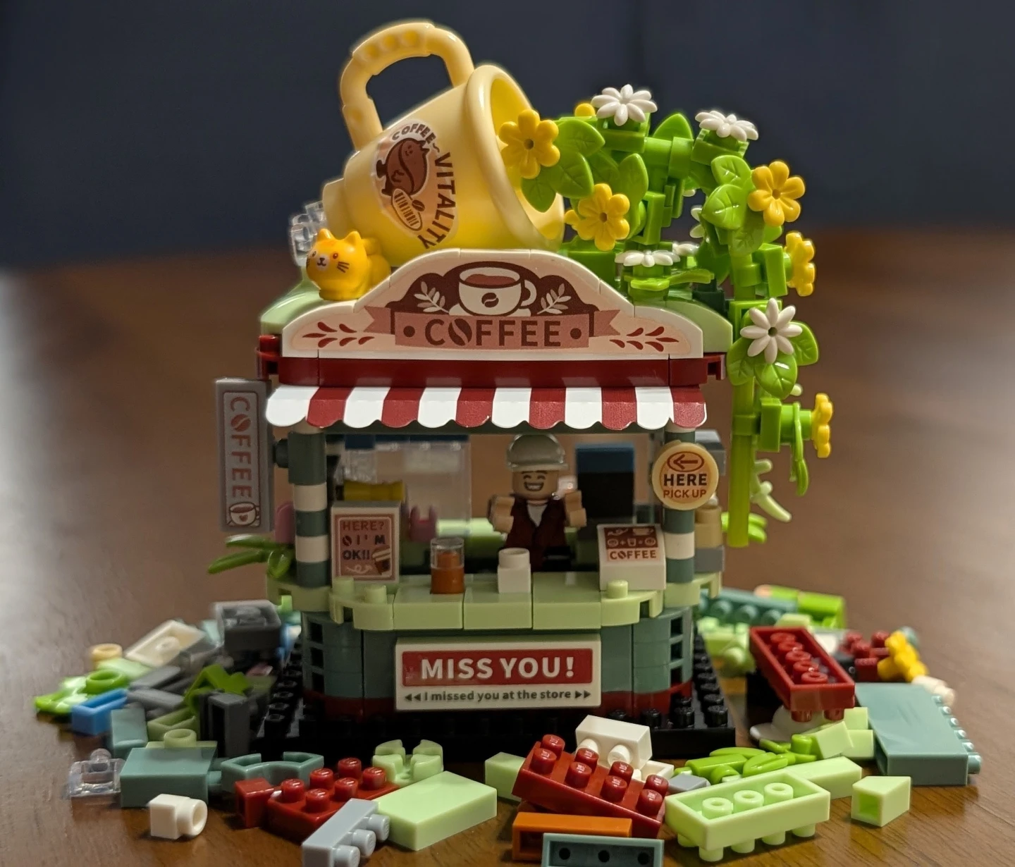 Comes in a set (street shops) #8851 (popcorn stall), #8852 (coffee shop/cafe - this item), & #8853 (Japanese takoyaki store). Message for full set and prices.