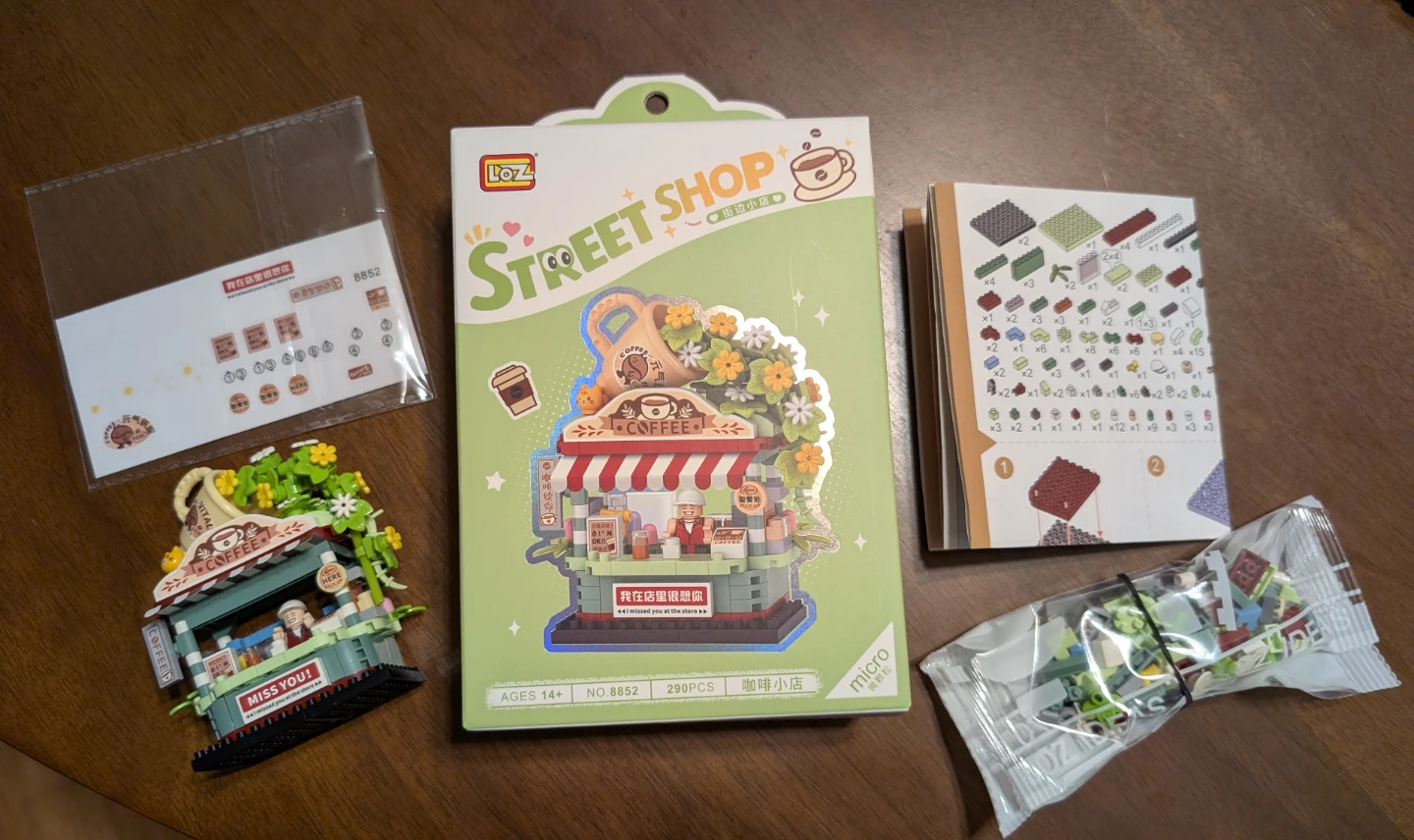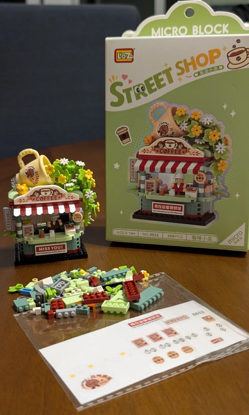 This is a LOZ Street Shop micro block building set with 290 pieces. It includes all original packaging and stickers. Ages 14+.