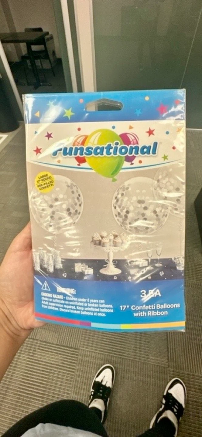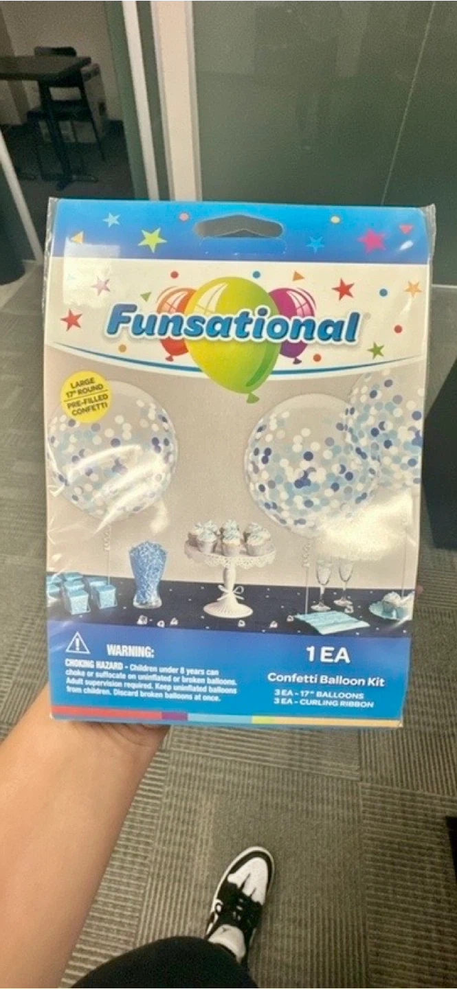 I have a Funsational confetti balloons for sale! It includes 3 x 17-inch balloons and curling ribbon. Perfect for parties and celebrations! I have Blue, Pink and Silver available. Buy 1 pack for $5 or 3 packs for $10 (3 of each colour are available, but can also mix and match)
