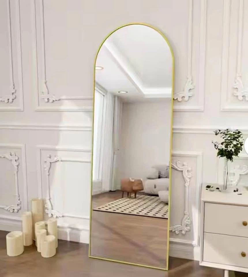 50Add elegance and light to your space with this modern arched full-length mirror. The sleek gold aluminum alloy frame gives it a luxurious look while staying lightweight and durable. Perfect for bedrooms, dressing rooms, hallways, or entryways. Size: 17 in. W x 58 in. H Stylish arched top design Sturdy aluminum alloy frame in gold finish Can be mounted on the wall or used as a floor mirror Clear reflection with high-definition glass Versatile – fits modern, minimalist, or glam interiors Condition: New Pickup: highway 401 and Progress Ave