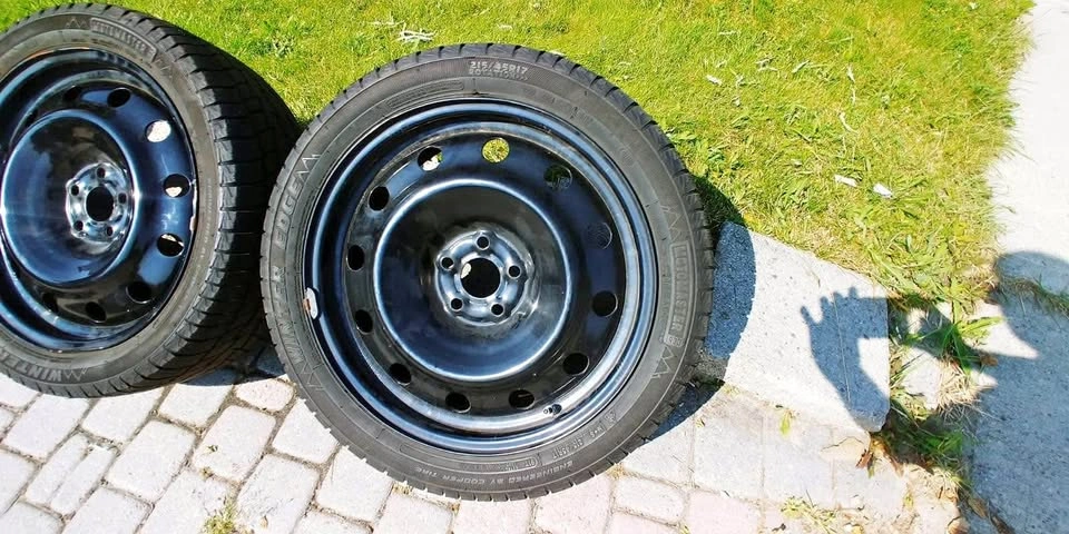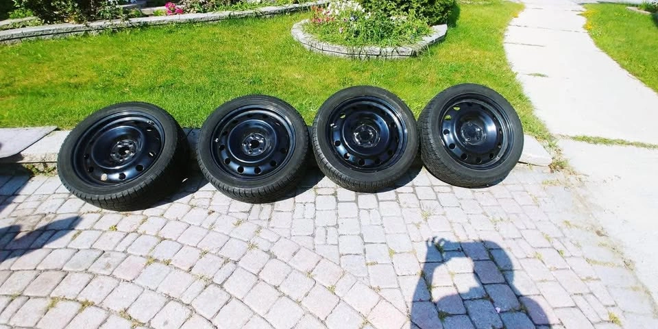Motomaster Winter Edge tires, size 215/45R17, with 17 inch rims. Bolt pattern is 5x114.3. TPMS included. Fits Hondas, Toyotas, and many more.