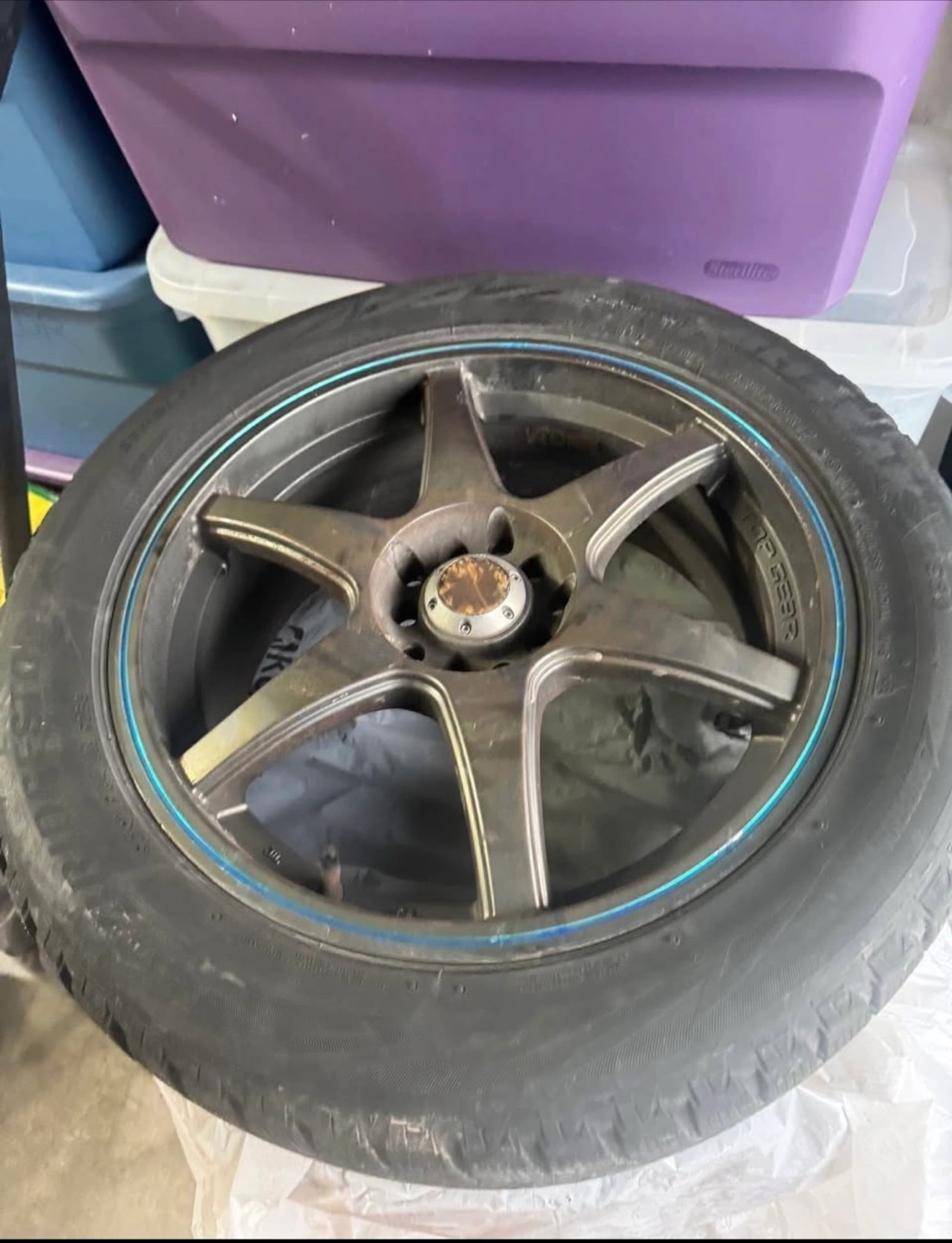 10Selling used set of rims with winter tires Bolt Pattern:5x114.3 17x7.5 Offset:45 As Is