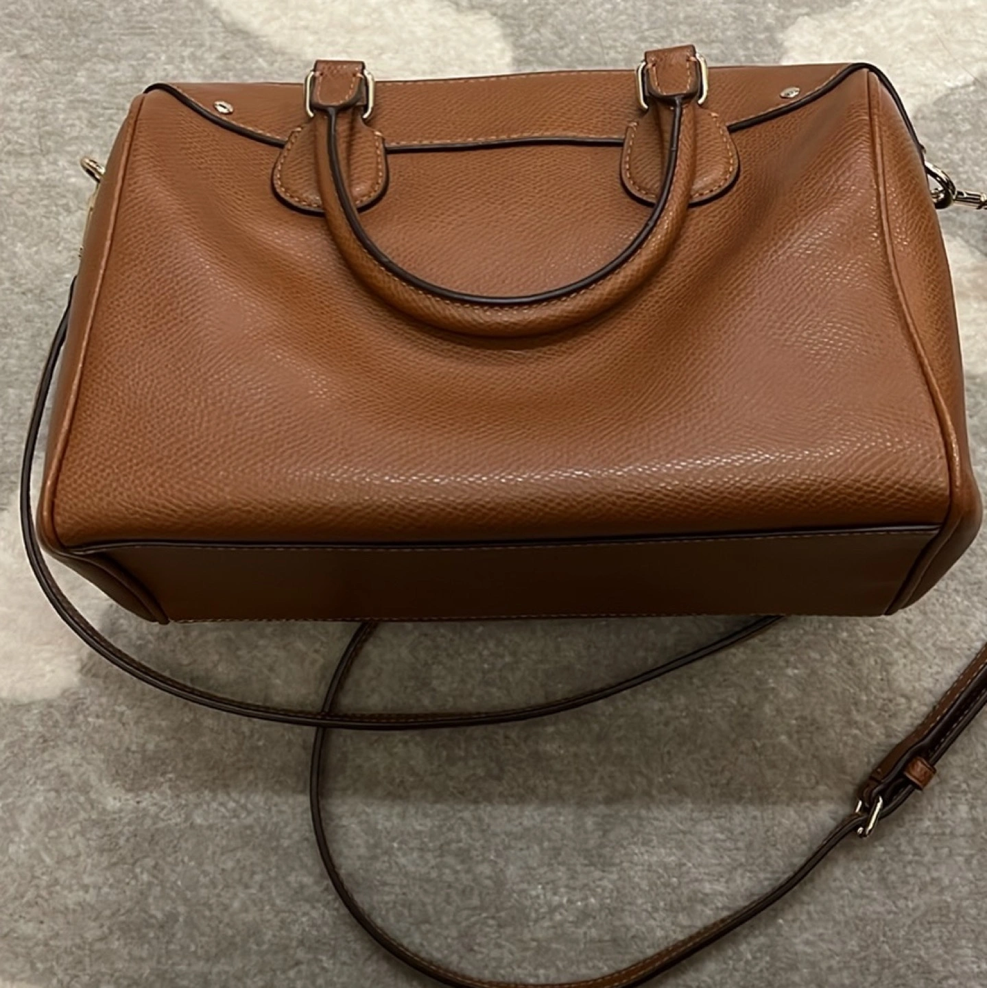 In good condition - no stains or scratches. Removable strap so it can be used as a satchel as well.