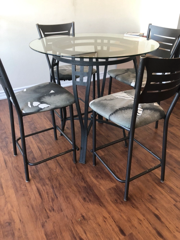 Bar height Dining room glass table With four chairs
