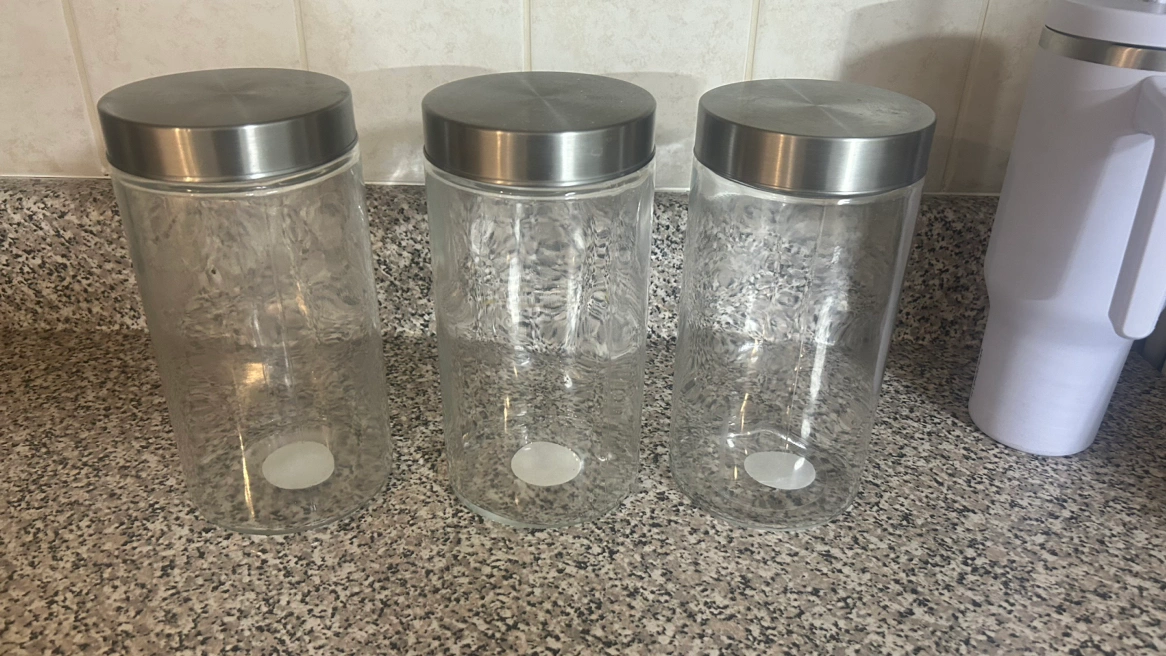 three brand new glass storage containers from the dollar store, all three of them for 3 dollars!! making it cheaper than buying them there! one was bought for 4 bucks, and the other two for 3 bucks each so brand new they were 10 dollars, selling for 3 for all 3 💕🥕 ✨MOVING SALE✨ check my page for more listings as i move!! tons of items! low prices!! almost everything is 10 dollars and under! 🥕 pick up only please.