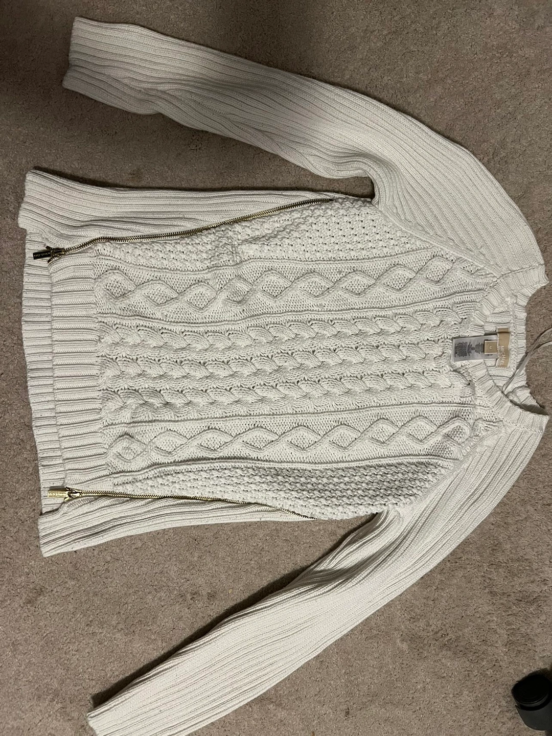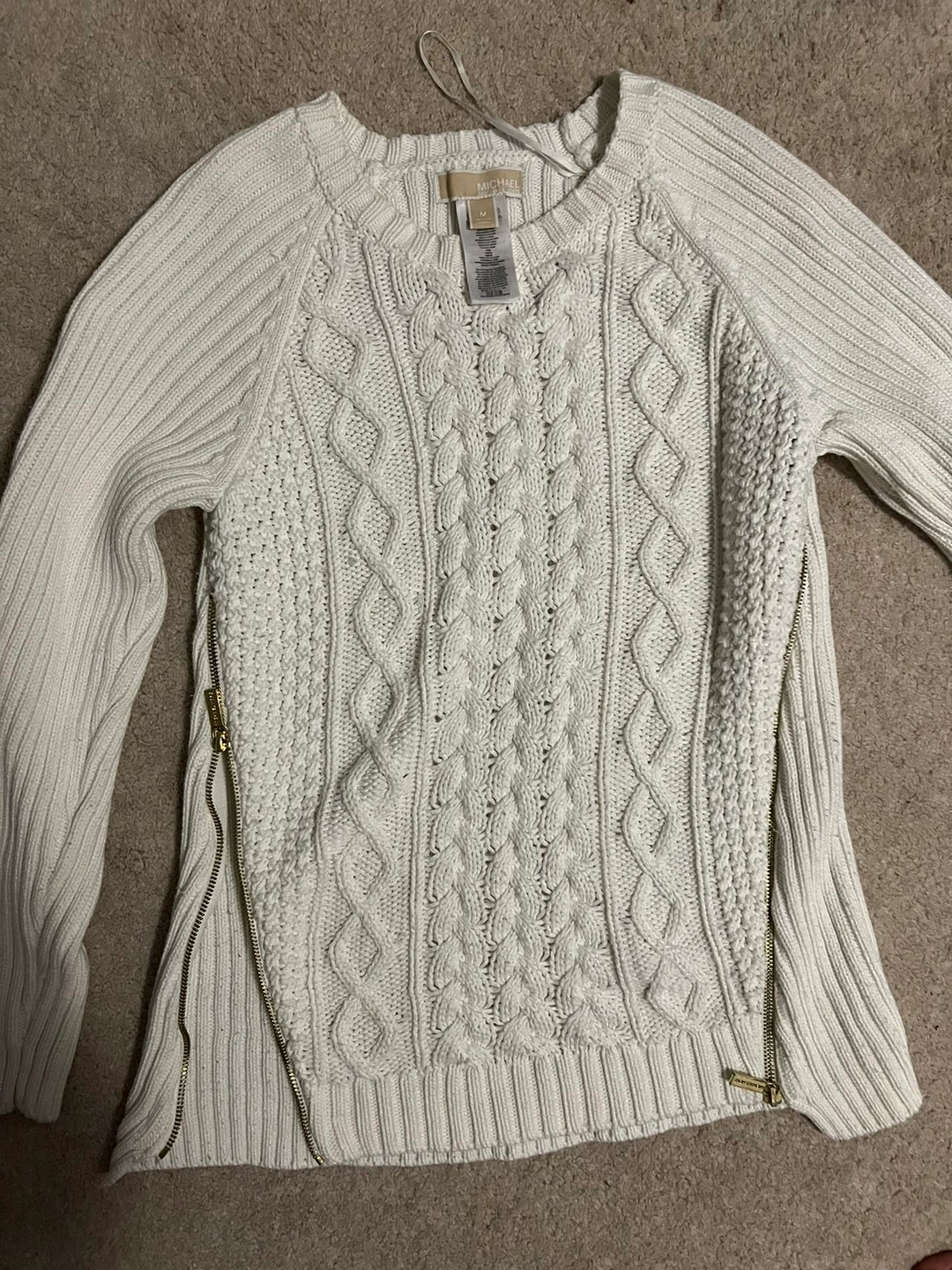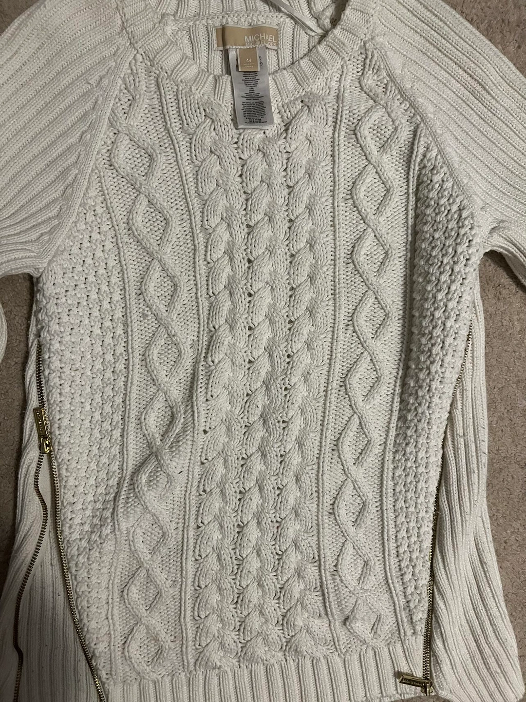 This is a size medium Micheal Kors white sweater with zippers on both sides.No longer fits and willing to negotiate.