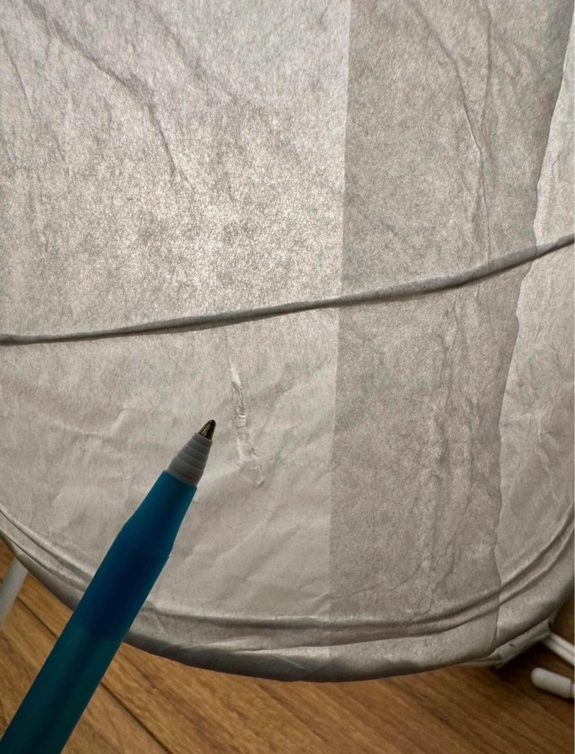 IKEA Vickleby floor lamp. One very small tear (second pic). Not noticeable. Comes with the E17 lightbulb from IKEA. 53” high.